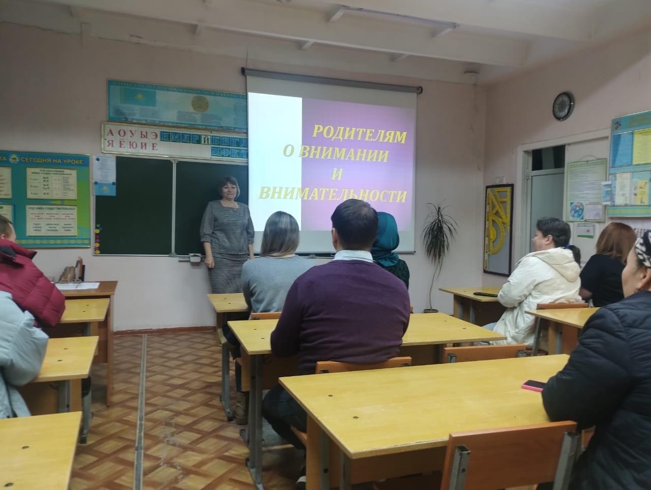 Ата-аналарды педагогикалық қолдау бағдарламасы аясында № 50 ЖББ КММ № 50 бастауыш сынып мұғалімі Л.Н. Кирпиченко 1-4 сынып оқушыларының ата-аналарымен «Біз назар аударамыз» тақырыбында сабақ өткізді.