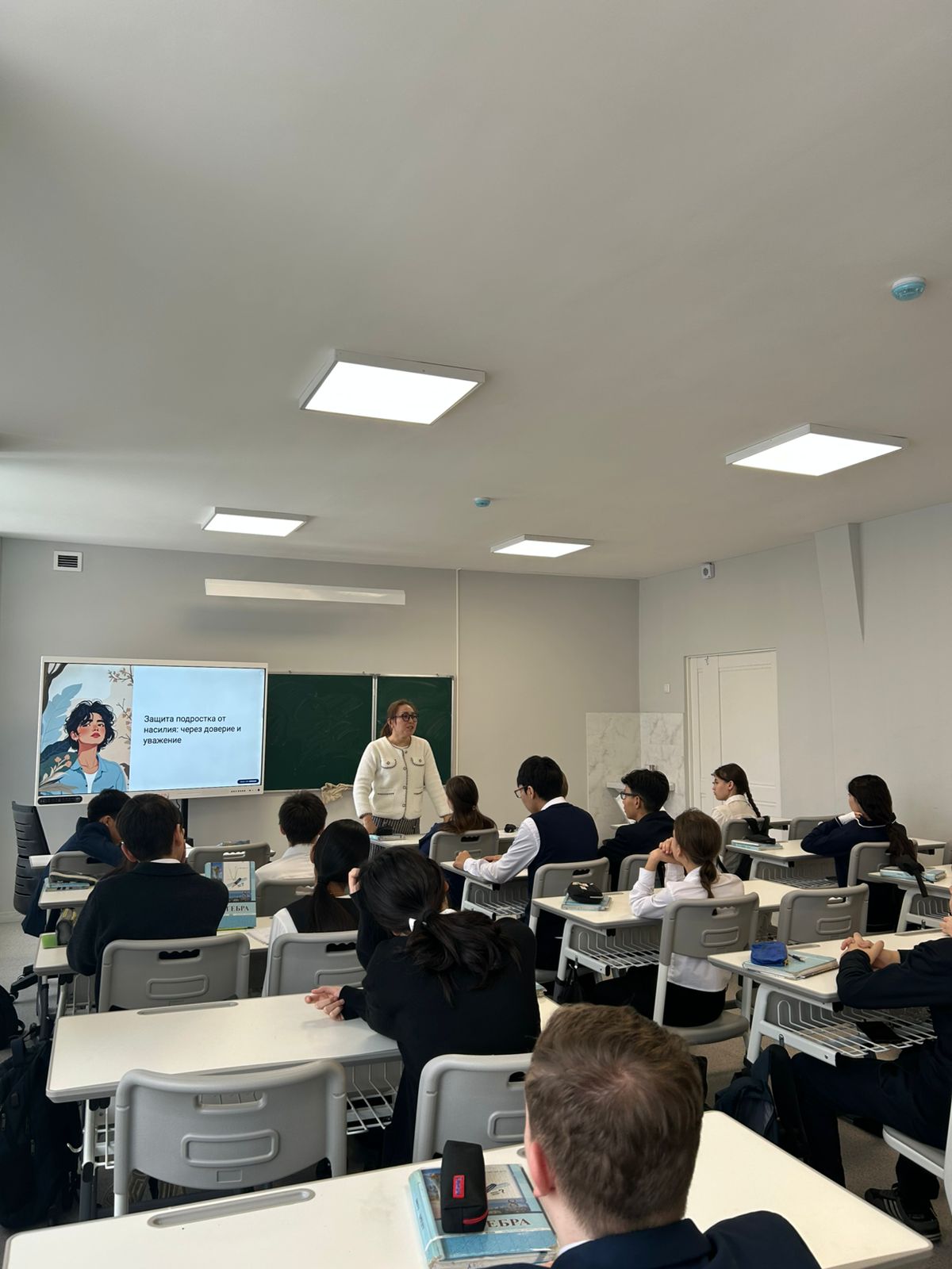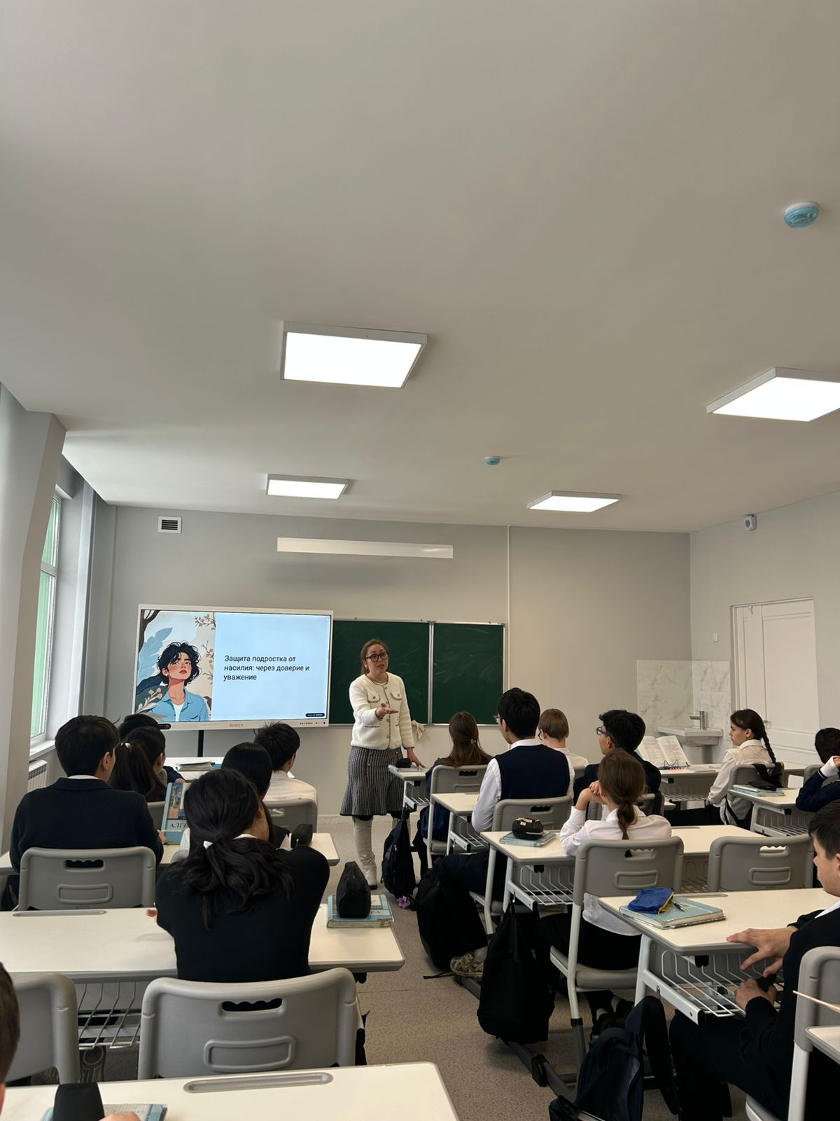 Ата-аналарды педагогикалық қолдау орталығының бағдарламасы аясында № 50 ЖББМ КММ педагог-психолог Н. Д. Қожағұлова 8-сынып оқушыларымен «Зорлық-зомбылықты тоқтатыңыз: шекараны біліңіз, өзіңізді қорғай біліңіз!».