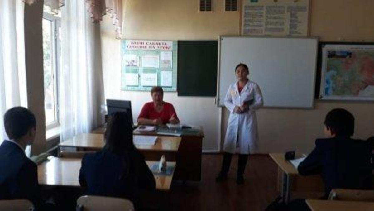20 қыркүйек 2019 0 1 2 3 4 5 Проведена беседа "Профилактика вирусных и инфекционных заболеваний" В КГУ ОШ 50 мед.сестрой Ахмедбековой Ж.У. с учащимися 5-9 классов проведена беседа "Профилактика вирусных и инфекционных заболеваний"