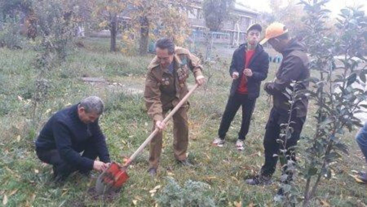12 қазан 2019 0 1 2 3 4 5 Посадка деревьев 12.10.2019 г. в КГУ ОШ 50 членами Совета старшеклассников, молодыми учителями, воинами-афганцами: Жарковым П.Д., Супиевым Р.Ю., Гарифуллиным Т.Т., Юн Р.Н., Назаровым Р.Т., Манаповым П.А. посажены 10 яблонь и 20 дубов