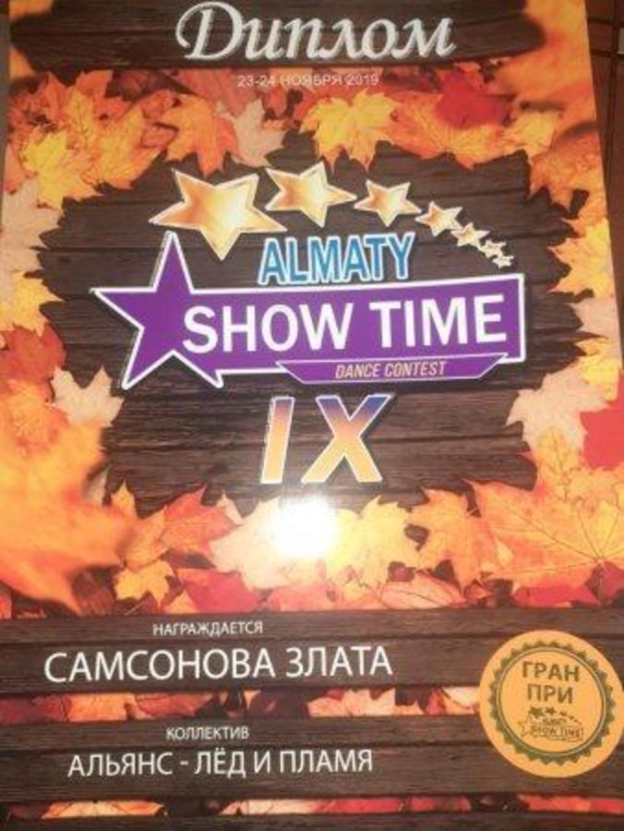 26 қараша 2019 0 1 2 3 4 5 Республиканский танцевальный конкурс Ученица 6а класса КГУ ОШ 50 Самсонова Злата приняла участие в Республиканском танцевальном конкурсе "Show Tine" и заняла Гран-при