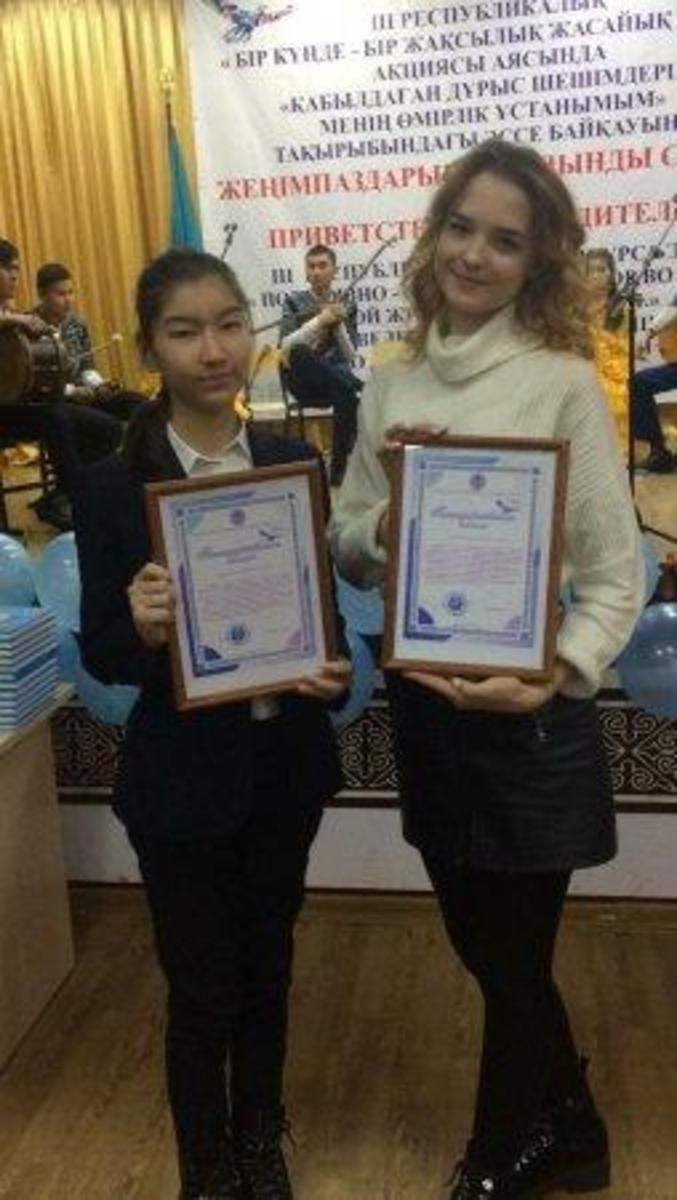 Ученицы КГУ ОШ 50 Грищенко Арина, 11 класс и Иблимин Сабина, 9 класс под руководством учителя русского языка и литературы Бикташевой Р.В. участвовали в Третьем республиканском конкурсе эссе "Позитивно-правильный выбор во всем - мой жизненный принцип", и награждены благодарственными письмами Министерства культуры и спорта Республики Казахстан