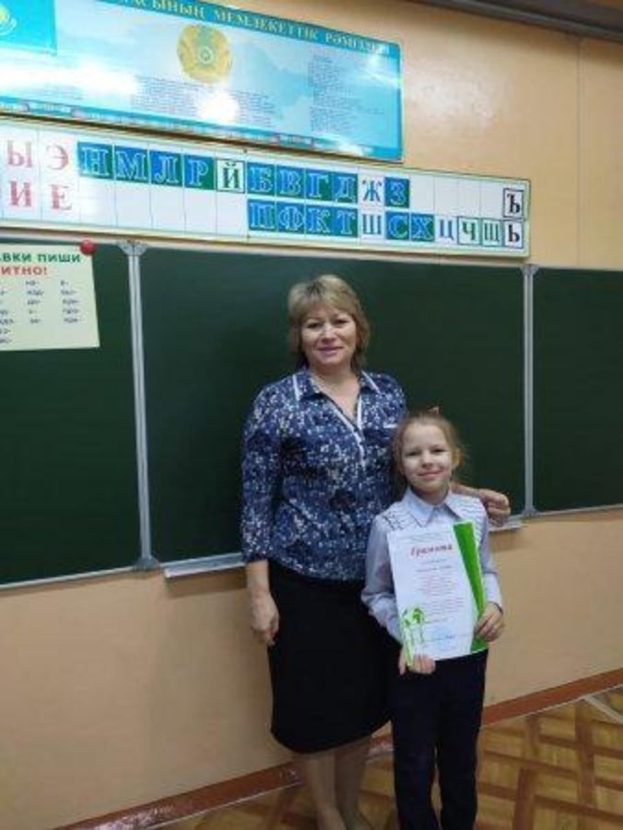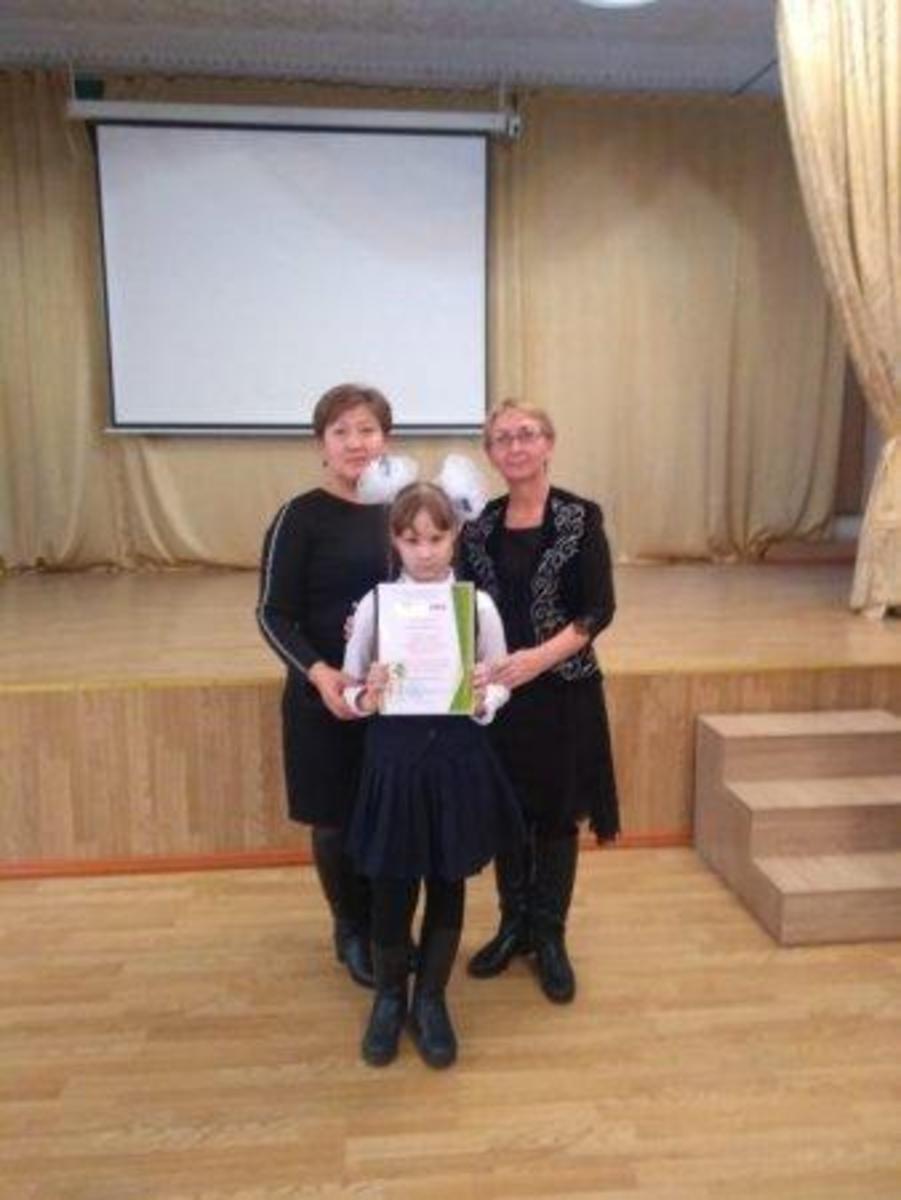 Ученица 3 "А" класса КГУ ОШ 50 Молдабаева Эльмира (учитель Кирпиченко Л.Н.) и ученица 3 "Б" класса КГУ ОШ 50 Кривохижина Лада (учитель Бегалиева А.Б.) награждены почётными грамотами за исследовательский дух, за любовь к природе, за первые шаги в науке в Городском конкурсе-фестивале "ЭКОША" среди учащихся начальной школы.