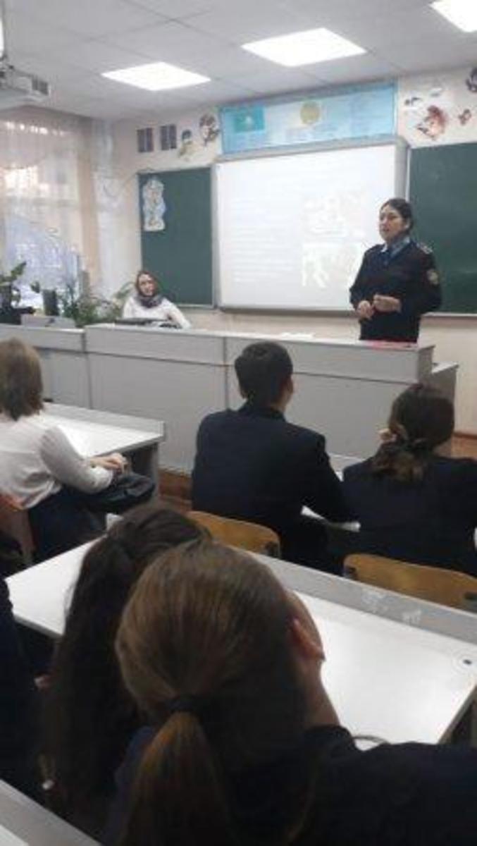 В КГУ ОШ 50 школьным инспектором майором полиции Мусаевой Г.И. с учащимися 10-11 классов в количестве 50 человек проведена профилактическая лекция-беседа "Административная и уголовная ответственность несовершеннолетних"