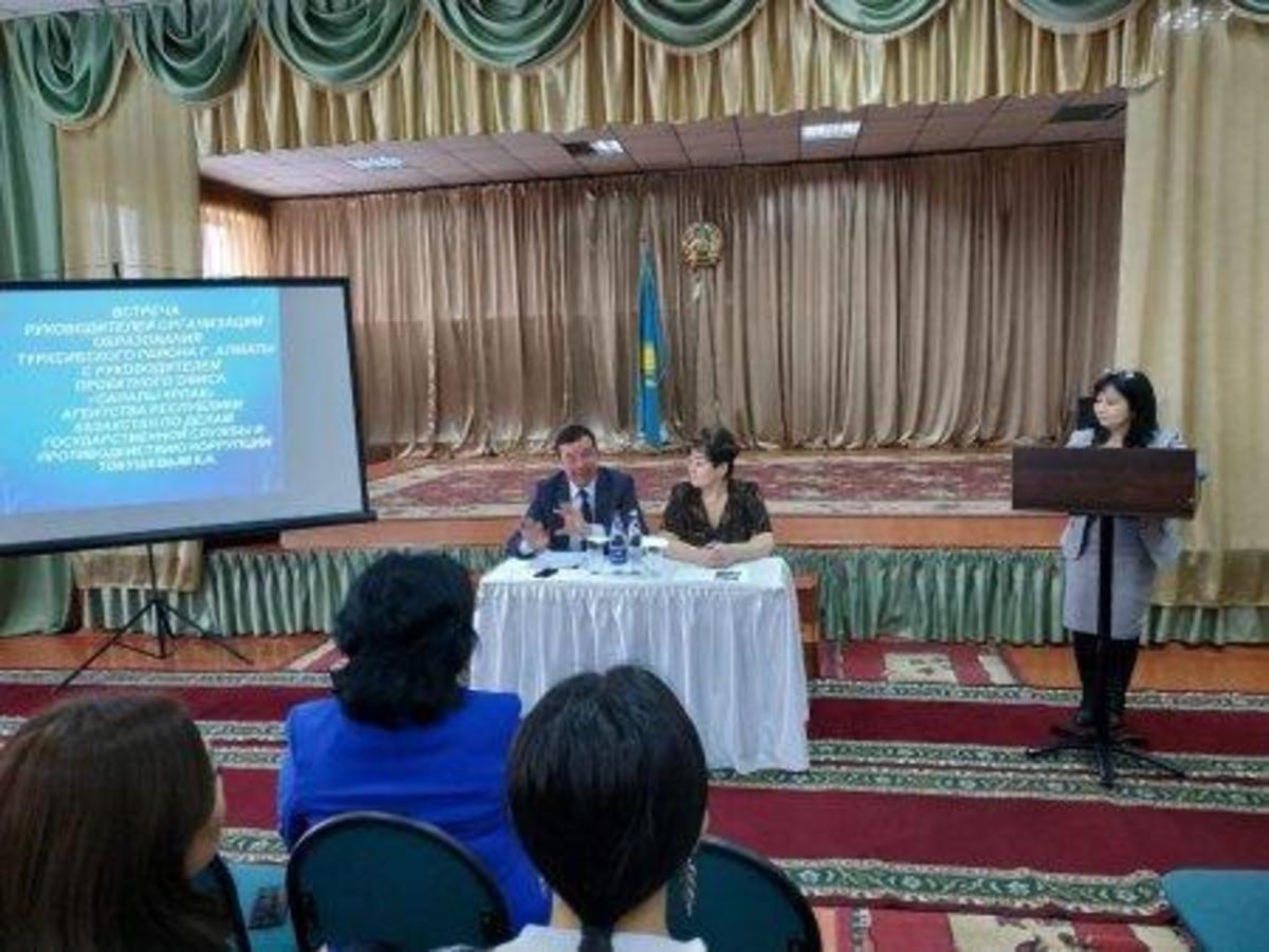 15 қаңтар 2020 0 1 2 3 4 5 Встреча руководителей организаций образования Встреча руководителей организаций образования Турксибского района г. Алматы с руководителем проектного офиса «Саналы Ұрпақ» Агентства Республики Казахстан по делам государственной службы и противодействию коррупцииТокушевым К.А.