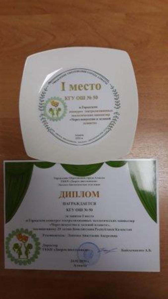 Команда КГУ ОШ № 50 заняла I место в Городском конкурсе театрализованных экологических миниатюр «Через искусство к зеленой планете», посвященному 25-летию Конституции Республики Казахстан (руководитель: Лаптева Анастасия Андреевна).