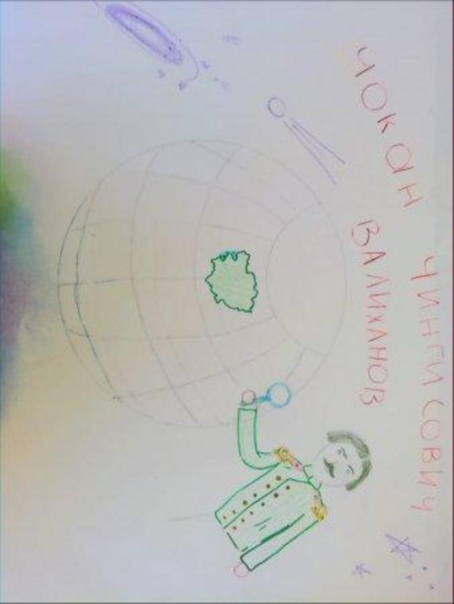 Учащиеся, вдохновившись содержанием урока, нарисовали портрет первого казахского учёного, историка, этнографа, фольклориста, путешественника, просветителя.