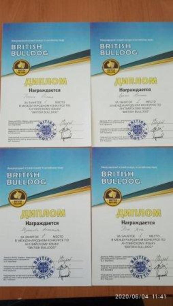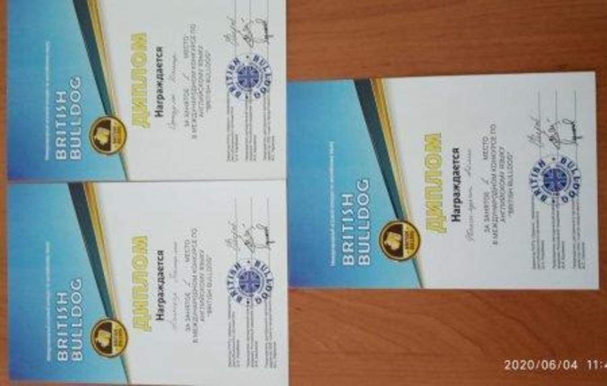 награждены дипломами за занятое 1 место в Международном конкурсе по английскому языку