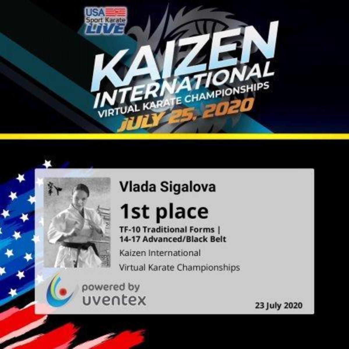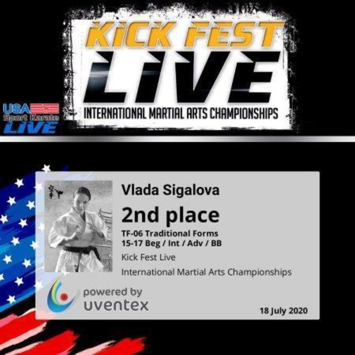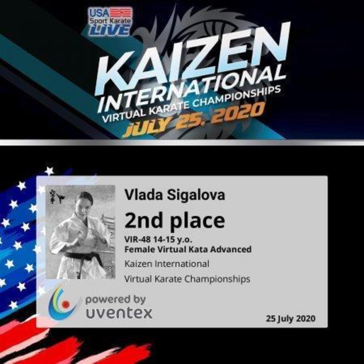 Открытый международный турнир Kick Fest Live International Martial Arts Championship и Kaizen International Virtual Karate Championship проходил на территории США. Все спортсмены принимали участие посредством платформы Zoom, таким образом судьи оценивали участников онлайн. В данных соревнованиях ученица 9 класса КГУ ОШ 50 Сигалова Влада заняла 1 место и два вторых места среди девушек 15-17 лет в категории Ката.