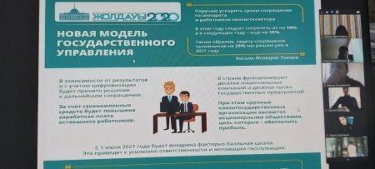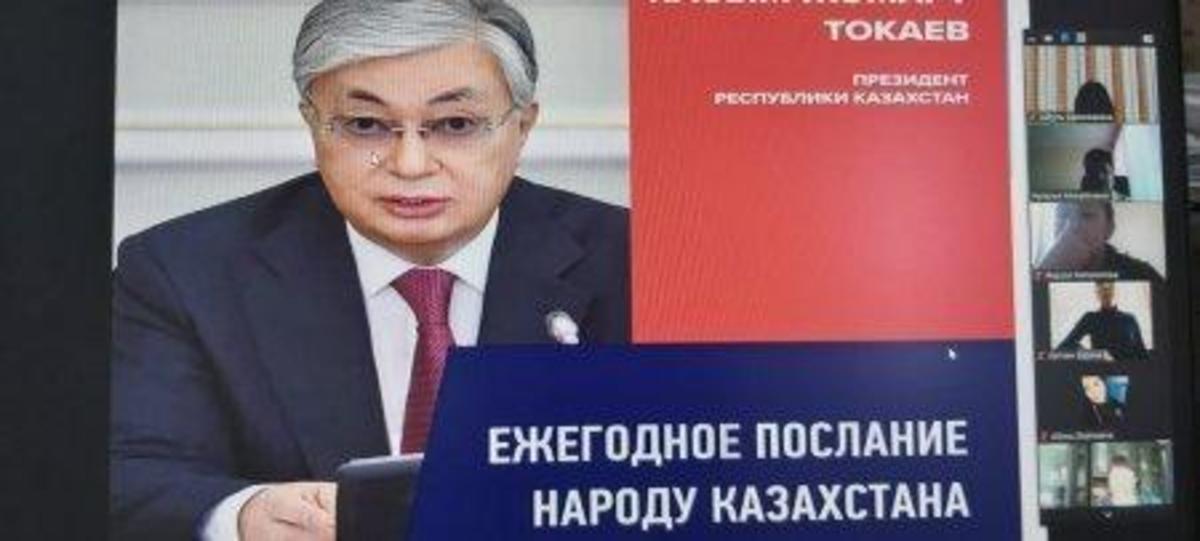 Директор школы Отелбаева Г.А. озвучила, что во вступительной части Президент дал оценку сегодняшней ситуации в Казахстане в условиях коронавируса. Несмотря ни на что, Казахстан будет решать и проводить реформы, экономика должна работать на повышение благосостояния народа.