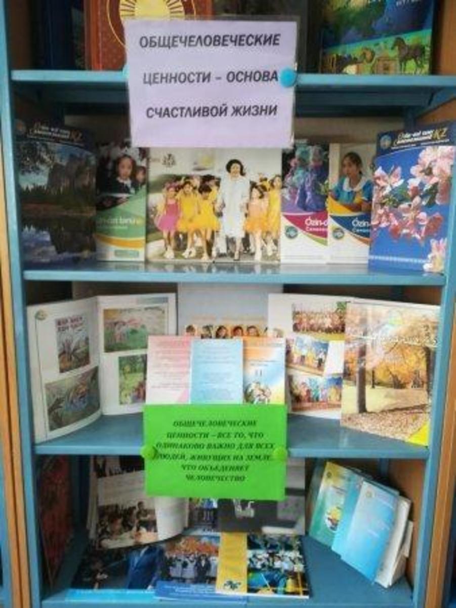 В рамках проведения недели, посвященной ежегодному Дню общечеловеческих ценностей заведующей библиотекой КГУ ОШ 50 Щербаковой С.А. оформлена выставка книг на тему:,, Общечеловеческие ценности - основа счастливой жизни. "