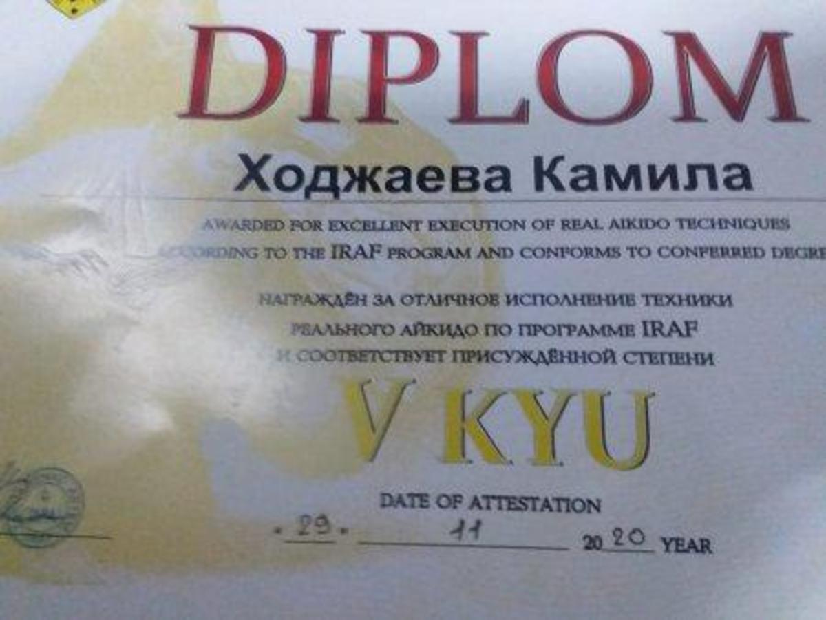 12 желтоқсан 2020 0 1 2 3 4 5 Награждена дипломом за отличное исполнение техники Ученица 2,,А"класса КГУ ОШ 50 Ходжаева К. награждена дипломом за отличное исполнение техники реального айкидо по программе IRAF и соответствует присужденной степени V KYU.