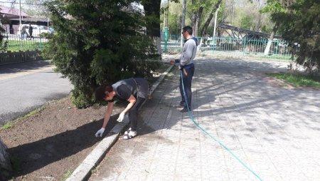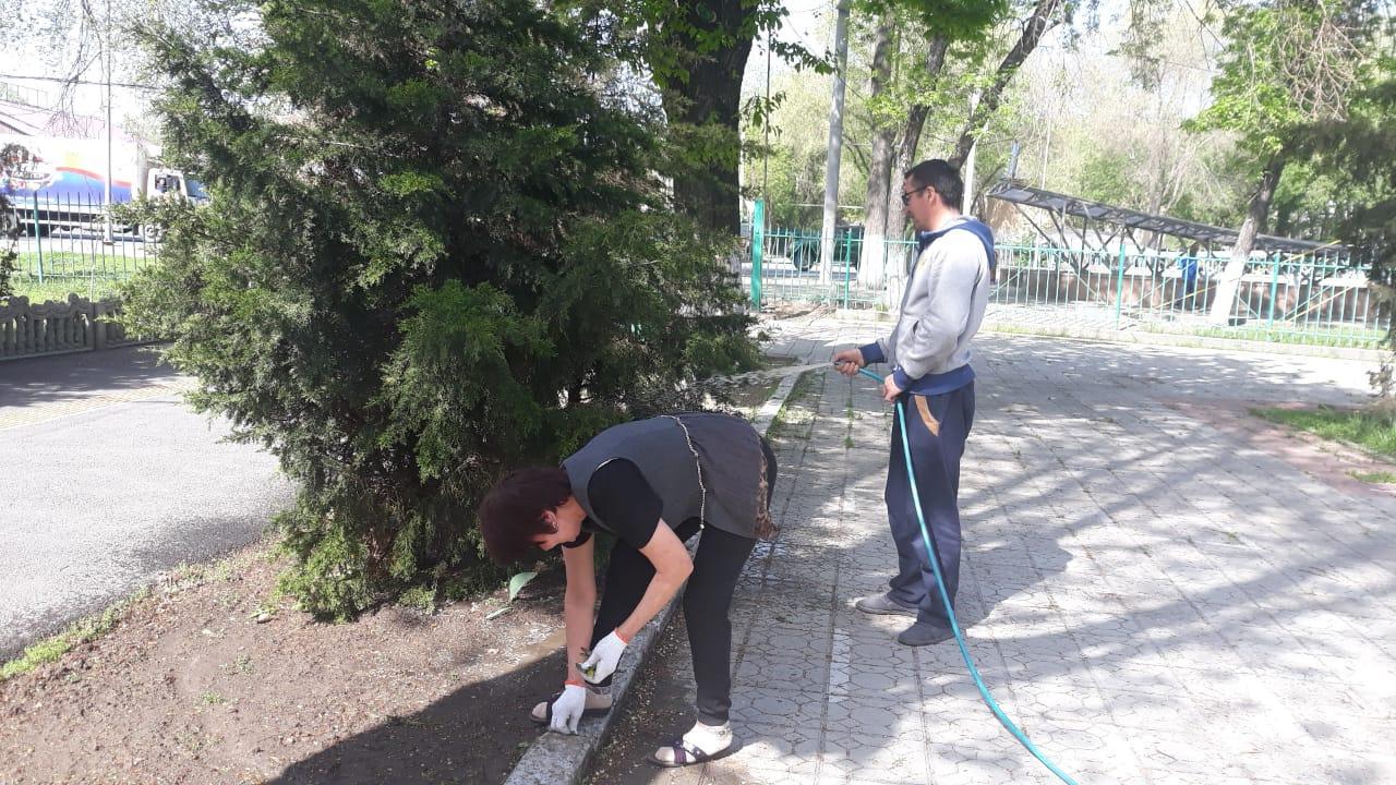 Школьный двор - это визитная карточка, требующая постоянной и целенаправленной работы по благоустройству и озеленению школьной территории. В рамках проведения общереспубликанской Недели экологического образования в КГУ ОШ 50 проводилась работа по благоустройству и озеленению территории школы педагогами, родителями, техническим персоналом.