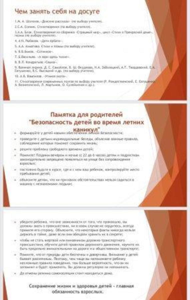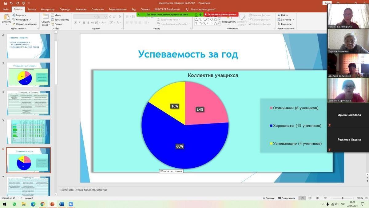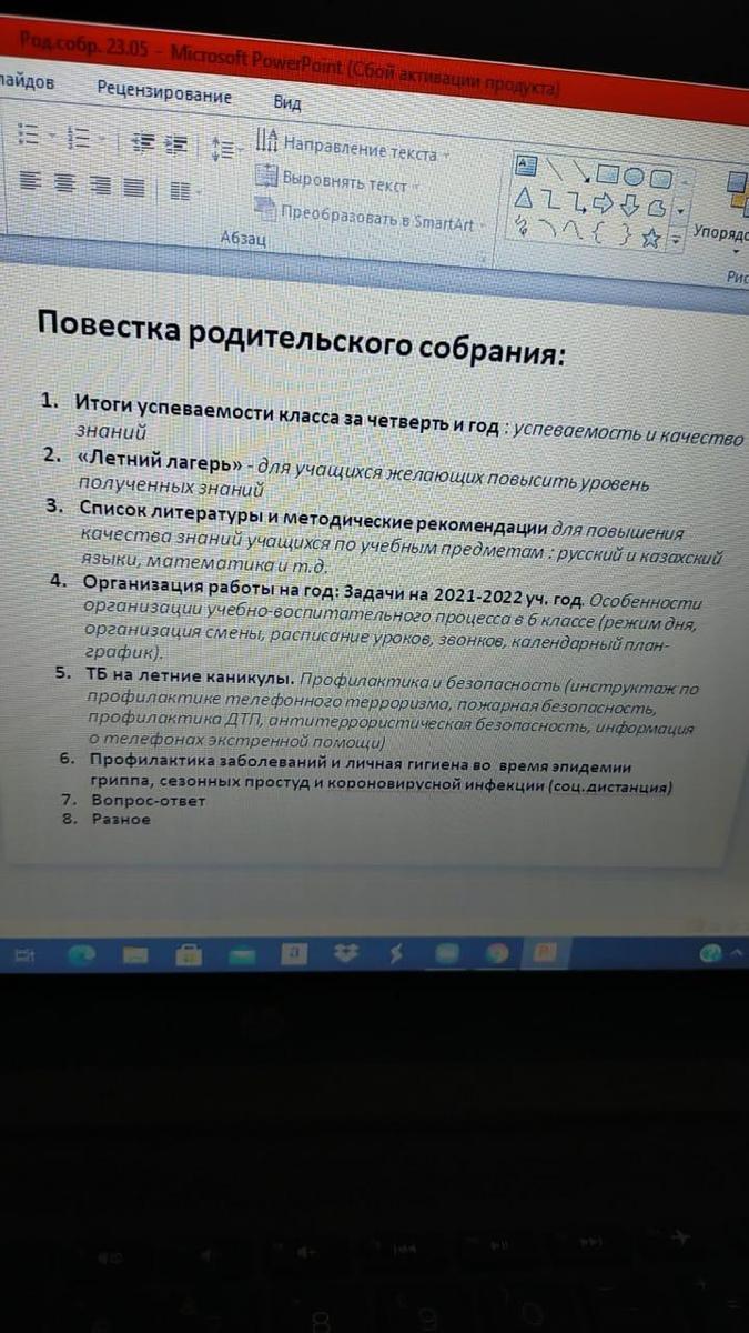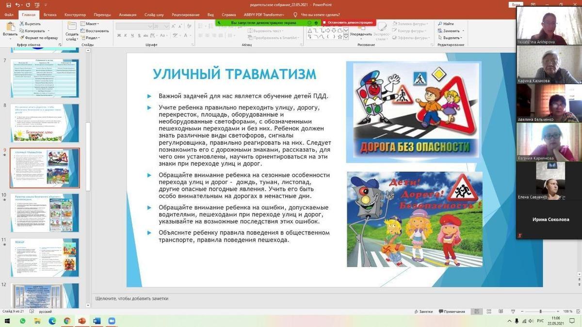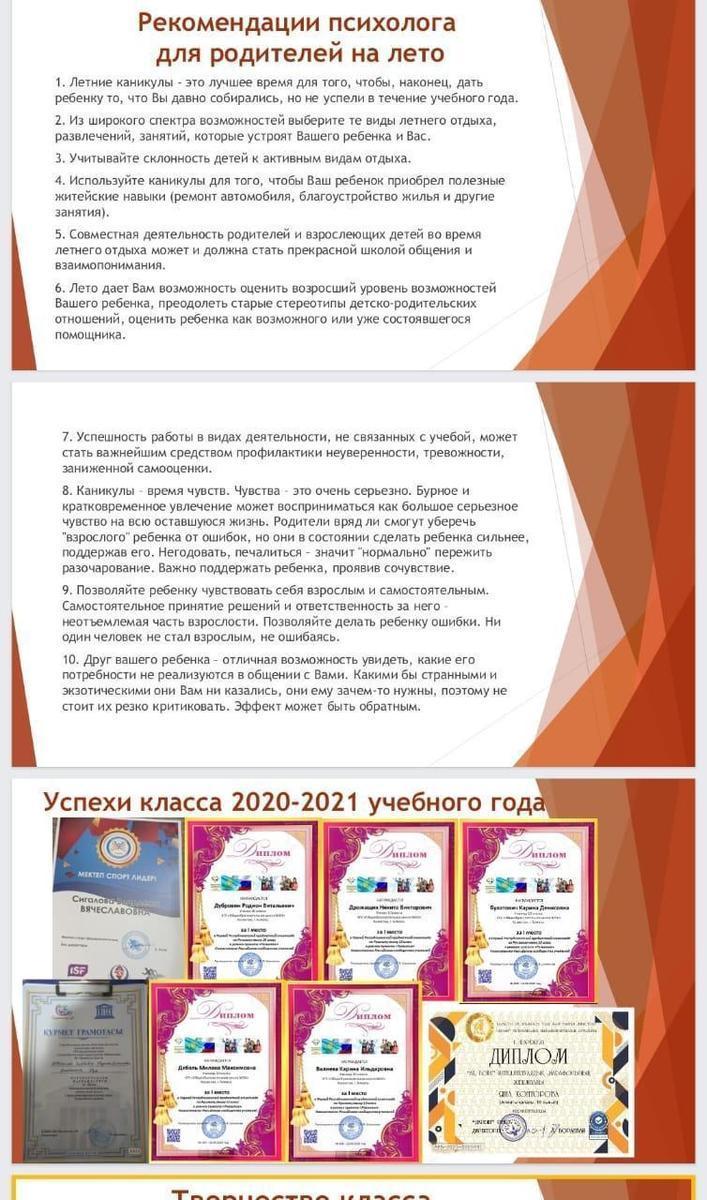 22.05.2021 года классными руководителями 1-11 классов КГУ ОШ 50 в онлайн - формате проведено общереспубликанское родительское собрание на тему :,, Об итогах учебного года." Рассмотрены следующие вопросы : 1.Итоги 2020-2021 учебного года. 2.Организация работы летней школы. 3.Вопросы по школьной форме на 2021 - 2022 учебный год. 4.Последний звонок, выпускной вечер (9-е, 11-е классы). 5.Профилактика правонарушений среди несовершеннолетних подростков - Мусаева Г. И., школьный инспектор, майор полиции Управления полиции Турксибского района. 6.ТБ на летние каникулы. Профилактика и безопасность. (Инструктаж по профилактике телефонного терроризма, пожарная безопасность, профилактика ДТП, ПДД, безопасность на воде, железная дорога, антитеррористическая безопасность, о телефонах экстренной помощи.) 7.Профилактика заболеваний и личная гигиена во время эпидемии гриппа, сезонных простудных заболеваний и коронавирусной инфекции (социальная дистанция).