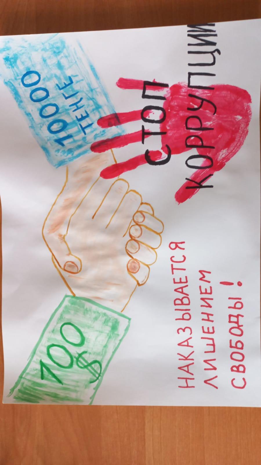 В КГУ ОШ № 50 в соответствии с планом воспитательной работы по формированию антикоррупционной культуры в школьной среде, с 22.11.2021 по 29.11.2021 г. среди учащихся 1-4 классов проведен конкурс рисунков «Образ честного и неподкупного труда». Лучшие рисунки следующих учащихся: Гориявчевой Анфисы, ученицы 4 «А» класса, Абинова Давида, ученика 1 «А» класса, Панченко Миланы, ученицы 4 «А» класса.