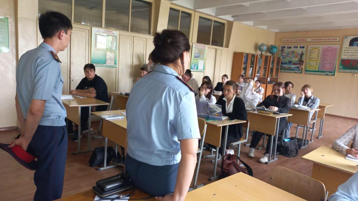 19 апреля 2022 года в КГУ ОШ 50 инспектором, капитаном полиции Абдигул Д. А. и капитаном полиции Байсеркеновой Б. Б. проведена профилактическая беседа с учащимися 6 - 8 классов в количестве 272 человек на тему :,, Административно - уголовная ответственность несовершеннолетних."
