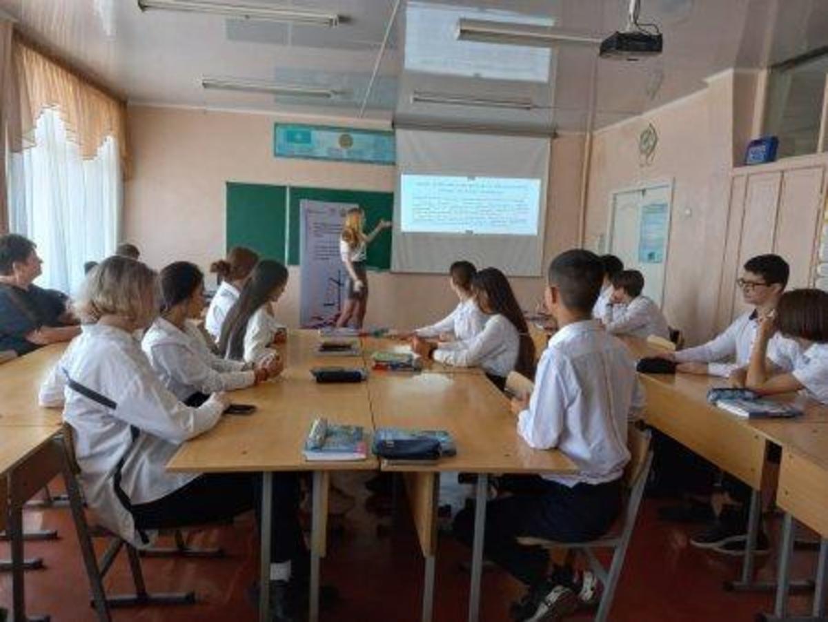 27 сентября 2022 г. учителем истории, руководителем клуба "Адал Ұрпақ" Некрасовой Н.М., представителем проектной команды Регионального общественного объединения «Сергали-Туркестан» Кутявиной Е.О. с учащимися 10-11-х классов, членами клуба «Адал Ұрпақ» проведен дискуссионный практикум «Основы общественного сознания».