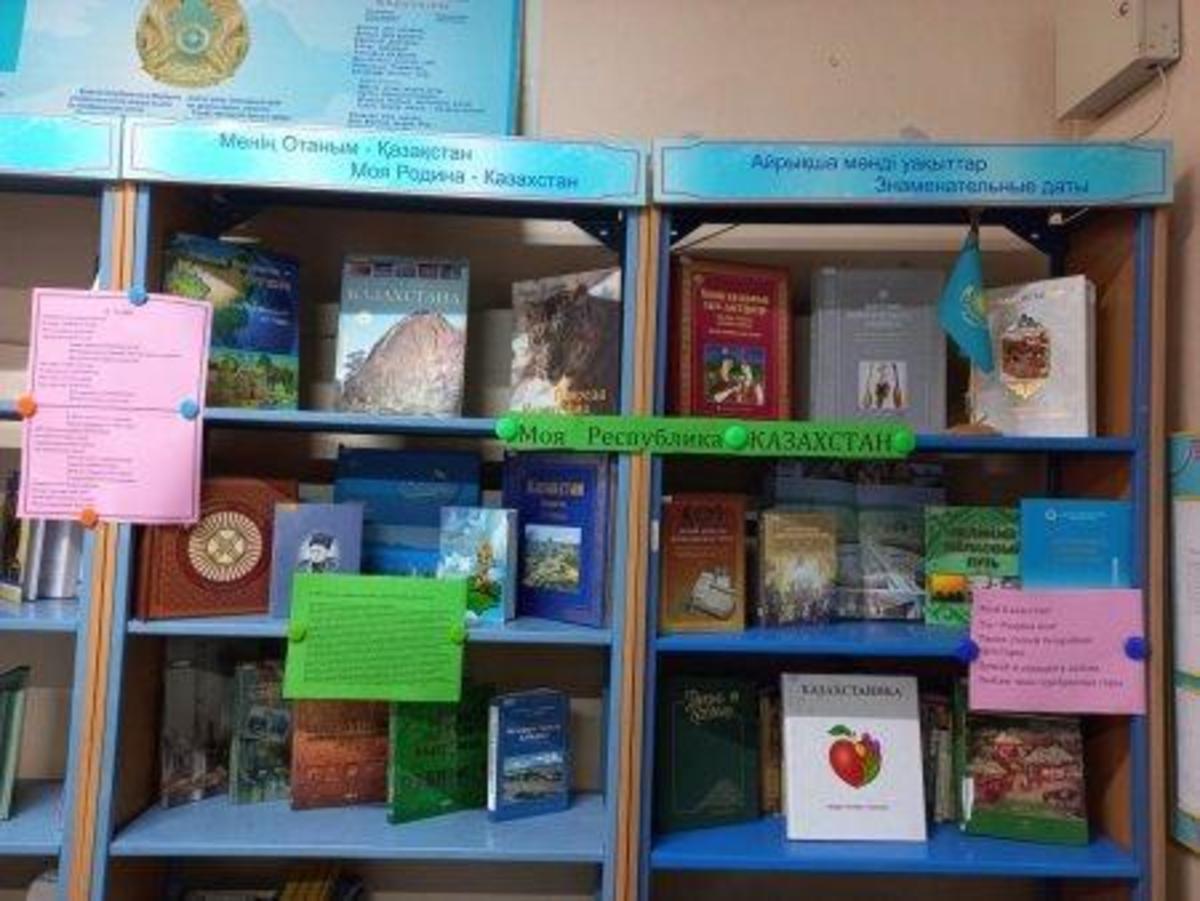 22 қазан 2022 0 1 2 3 4 5 кітап көрмесі. Книжная выставка Ко Дню Республики заведующей библиотекой КГУ ОШ № 50 Щербаковой С.А. оформлена книжная выставка «Моя Республика - Казахстан».