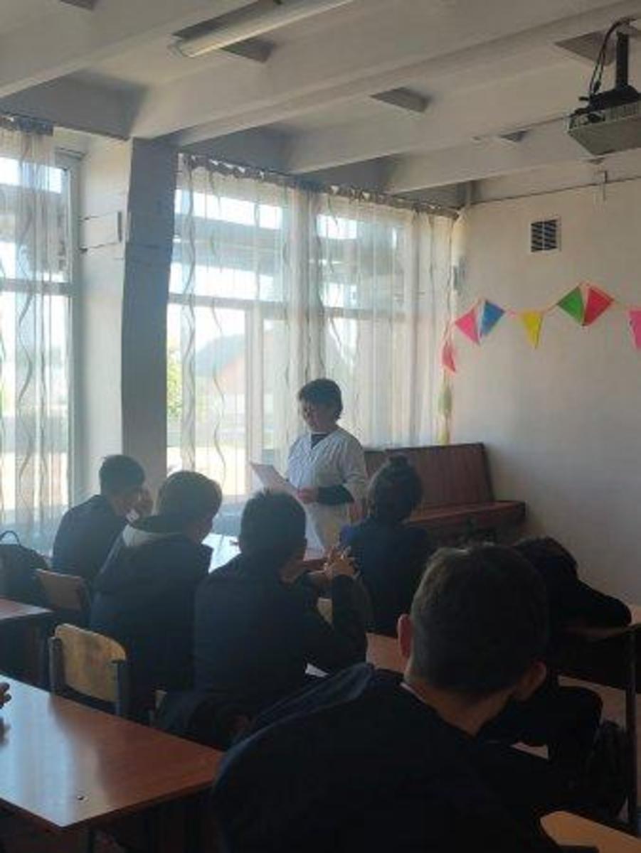 27 қазан 2022 0 1 2 3 4 5 Балаларға түсіндіру . No50Жалпы білім беретін мектеп медицина қызметкері Үйсінбаева Ш.А. 9-сынып оқушыларымен «Кәмелетке толмағандардың жыныстық қатынасқа қол сұғылмауы» атты әңгіме өткізілді.