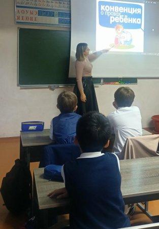 «Бала құқығы – адам құқығы» республикалық акциясы аясында 1-11 сынып сынып жетекшілері оқушылармен «Менің құқығым бар», «Бала құқығы туралы конвенция», «Мен азаматпын!» сынып сағатын өткізді. В рамках республиканской акции «Права ребенка - права человека» классными руководителями 1-11 классов с учащимися проведены классные часы «Я имею право», «Конвенция о правах ребенка», «Я – гражданин!».