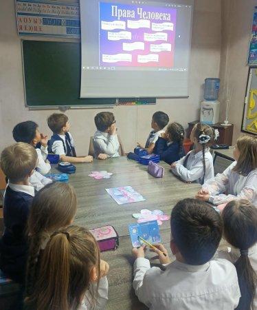 Республикалық «Бала құқығы – адам құқығы» акциясы аясында 4 «Б» сыныбының сынып жетекшісі Зырянова Г.А. оқушылармен «Адам құқығы» атты дөңгелек үстел өткізілді. В рамках республиканской акции «Права ребенка - права человека», классным руководителем 4 «В» класса Зыряновой Г.А. с учащимися проведен Круглый стол «Права человека».