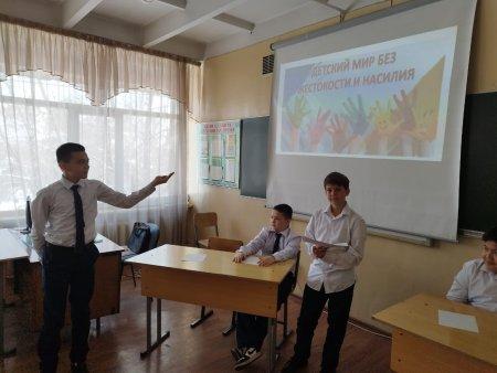 «Қатыгездік пен зорлық-зомбылықсыз балалық шақ» ақпараттық науқаны аясында No50 ЖОББМ-інде тарих пәнінің мұғалімі Шаймұрат Елдос Оралұлы 6 «А» сынып оқушыларымен «Қатыгездік пен зорлық-зомбылықсыз балалар әлемі» атты пікір-сайыс турнирін өткізді.