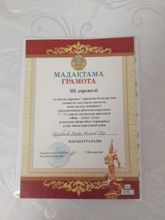 Тарих пәнінің мұғалімі Шаймұрат Елдос Оралұлының жетекшілігімен №50 ЖОББМ-нің 8 «Б» сынып оқушылары Кира Курабаева мен Егор Волков аудандық «Фан-дебат» дебат турнирінде 3-орынға ие болды.