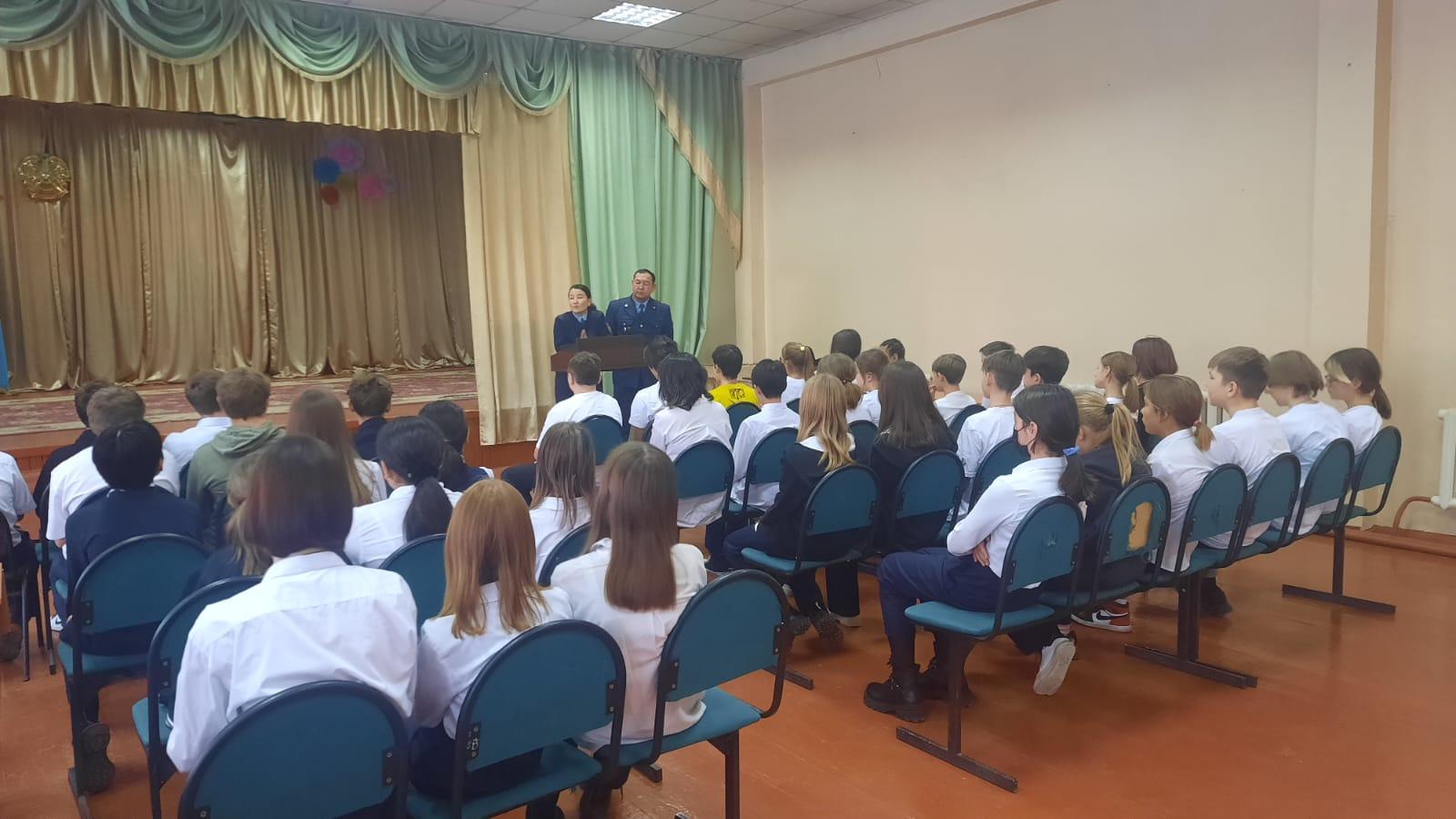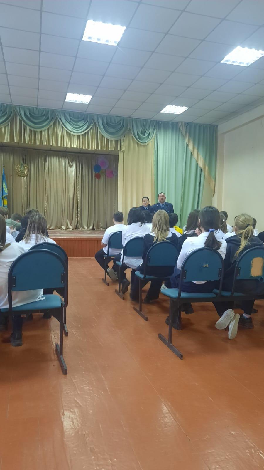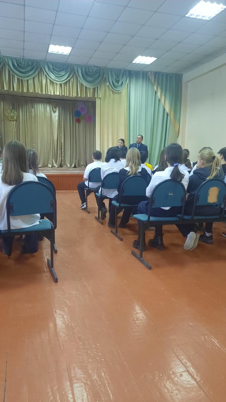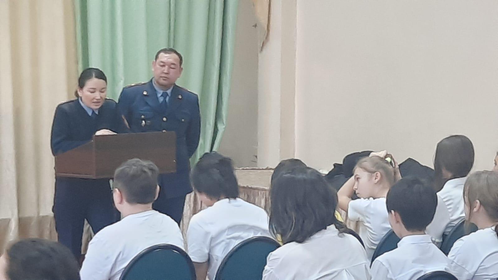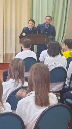 Түрксіб ауданы бойынша Учаскелік полиция инспекторы Ювеналды полиция бөлімі Жергілікті полиция қызметі бөлімің аға инспекторы полиция майоры Бақытбекова А.Б. және Учаскелік полиция инспекторы Ювеналды полиция бөлімі Жергілікті полиция қызметі бөлімің Түрксіб ауданы, полиция майоры Қалмаханов Н.С. №50 КММ 6-7 сынып оқушыларымен: