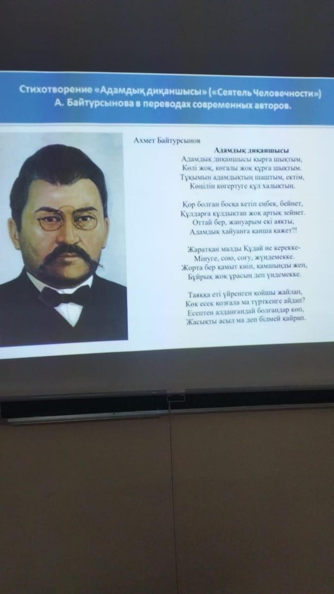 24 қаңтар 2023 0 1 2 3 4 5 А.Байтұрсыновтың 150 жылдығына арналған сынып сағаты. Классный час посвященные 150-летнему юбилею А. Байтурсынова. 2023 жылдың 24 қаңтарында 1-11 сынып жетекшілері А.Байтұрсыновтың 150 жылдығына арналған No50 ЖББМ-інде оқушылармен сынып сағаттарын өткізді.В КГУ ОШ № 50 24.01.2023 г. классными руководителями 1-11 классов с учащимися проведены классные часы, посвященные 150-летнему юбилею А. Байтурсынова.