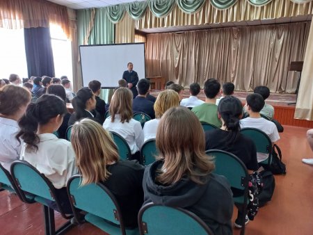 В КГУ ОШ № 50 старшим лейтенантом полиции Саукельдиным Максутом проведена профилактическая беседа с учащимися 9-11-х классов на тему: «Административно-уголовная ответственность несовершеннолетних