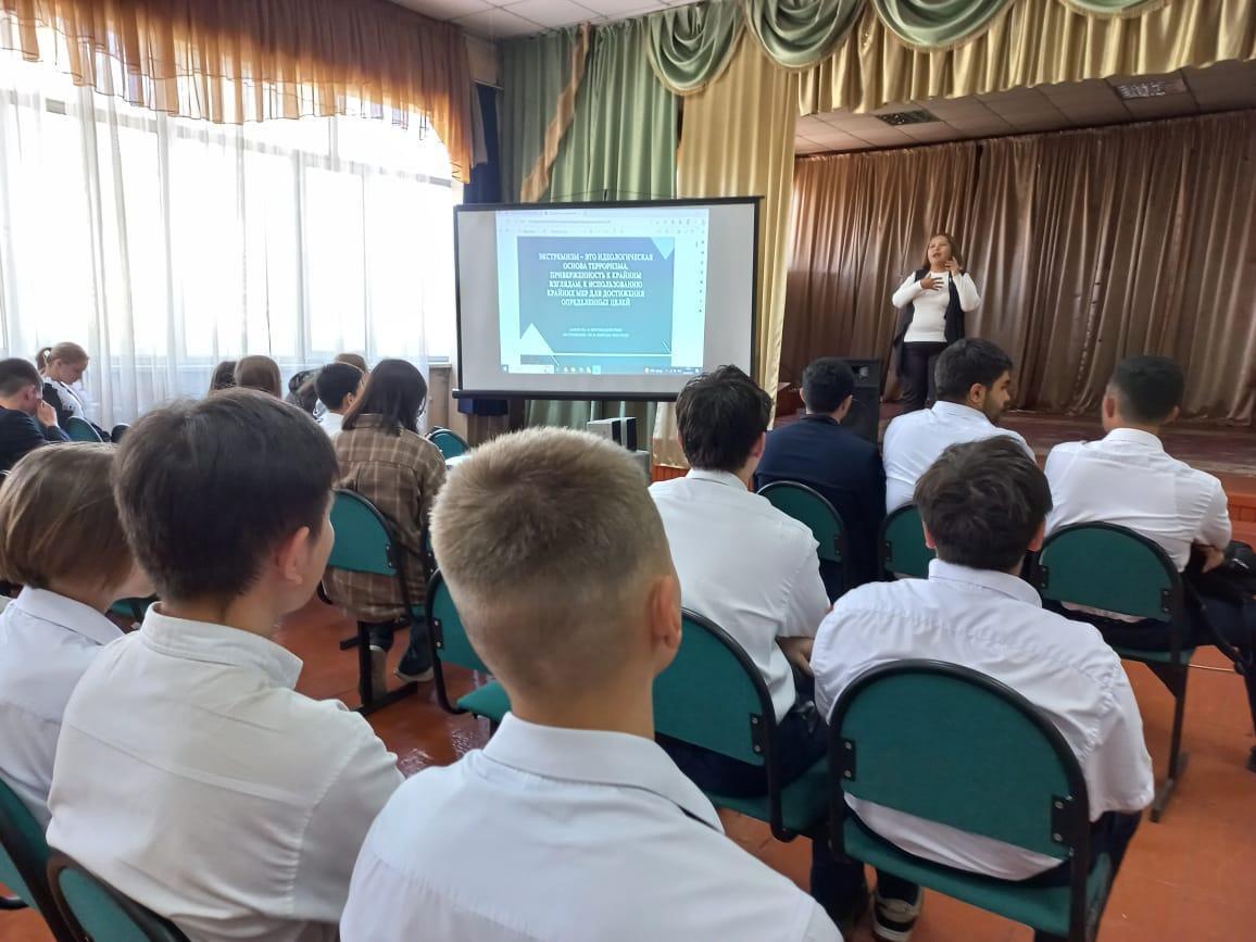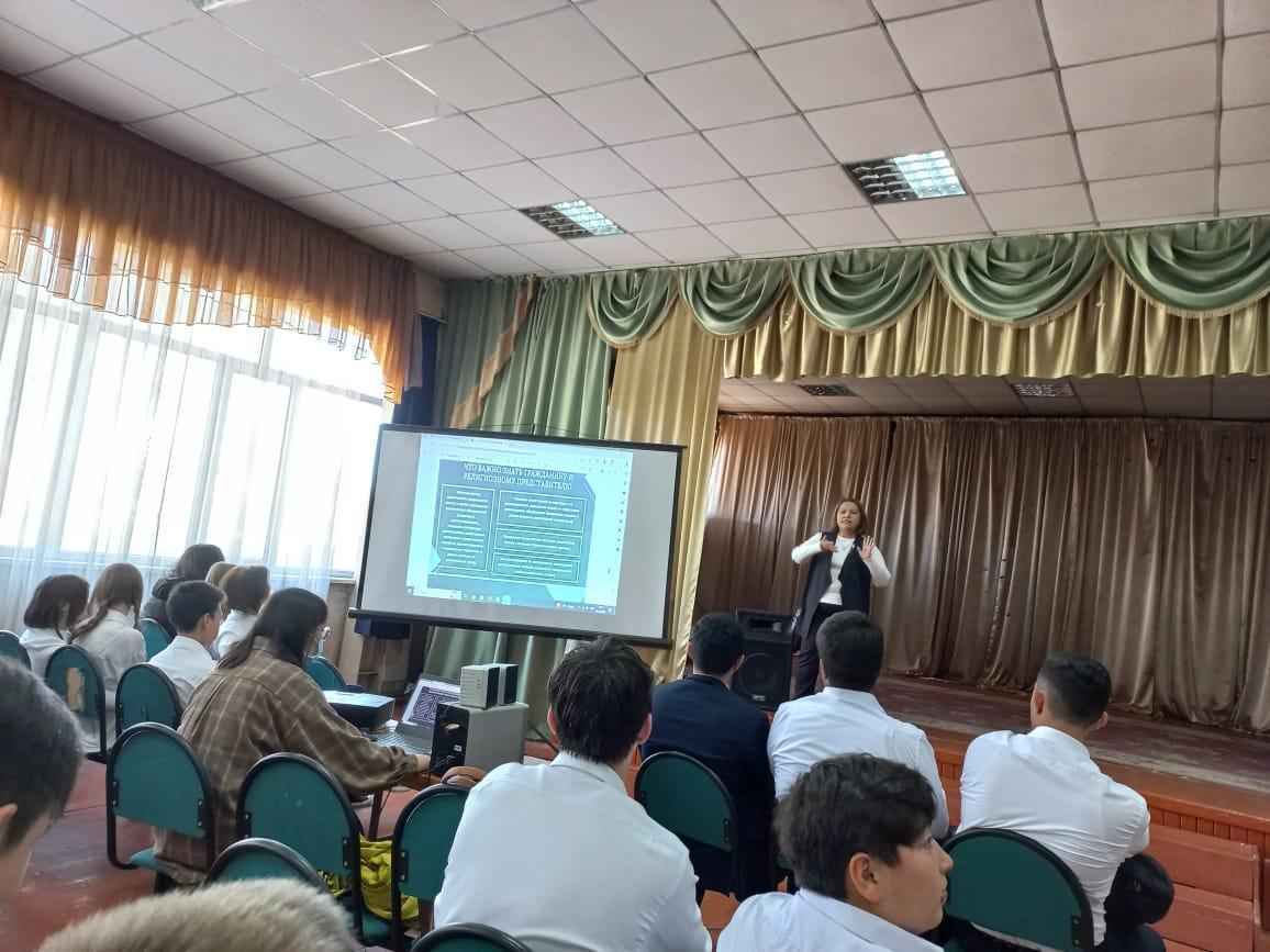 В КГУ ОШ № 50 26.04.2023 г. учреждением «Центр образования и новых инновационных технологий» проведена лекция по профилактике религиозного экстремизма и терроризма для учащихся 9-11 классов. На встрече выступила член информационно-разъяснительной группы, старший преподаватель КазНУ им. Аль-Фараби, докторант религиоведения, Тунгатова Улжан Аскарбаевна, которая рассказала учащимся о признаках деструктивных религиозных течений, методах распространения экстремистских идей, о взаимосвязи национальных и религиозных ценностей. Также, Тунгатова У.А. отметила важность подъема общей культуры и образованности населения, включая правосознание, утверждение толерантных традиций в семье и обществе для обеспечения межконфессионального мира и согласия. В ходе мероприятия участники получили ответы на интересующие их вопросы.