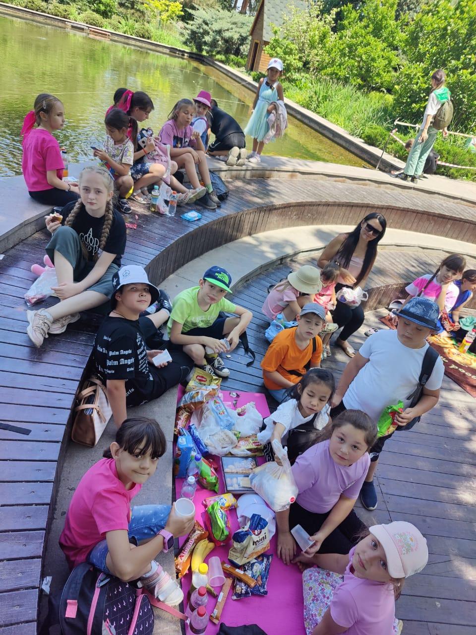 Бүгін балалардың «Жаз» жазғы мектеп лагеріндегі демалысы аяқталды. Күн қызықты оқиғаларға өте бай болды: боулинг және Ботаникалық баққа бару. Балалар доптарды ынтамен, зейінмен айналдырды. Олардың көпшілігі үшін бұл олардың алғашқы тәжірибесі болды, сондықтан бірден нәтиже бермеді, бірақ бәрі тырысып, өздерін сынады. Содан кейін балалап Ботаникалық баққа серуендеуге шықты. Оқушылар демалып, ғажайып пейзаждарды, өсімдіктердің қайталанбас әлемін тамашалады. Біздің лагерьдегі бұл демалыс күні барлық балалардың есінде қалады!