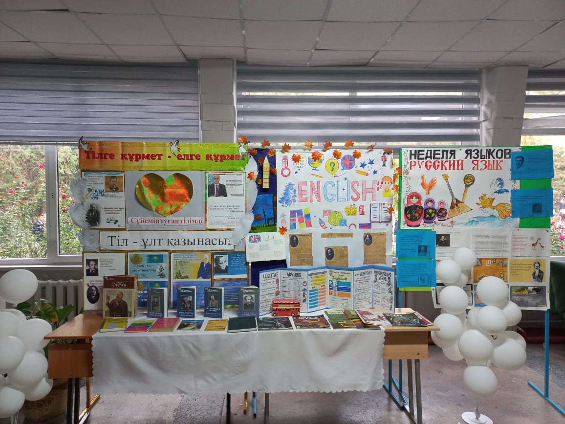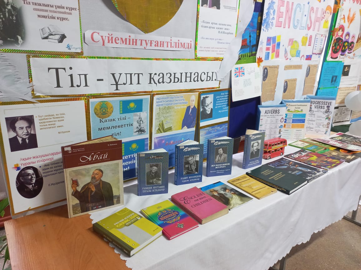Ко Дню языков народа Казахстана, в центральной рекреации КГУ ОШ № 50 оформлены стенды и книжная выставка «Тіл ұлт қазынасы».