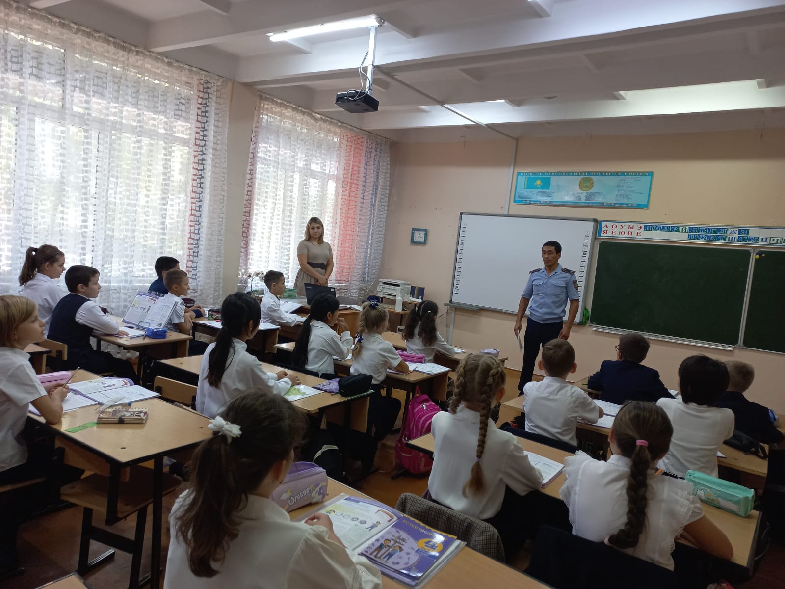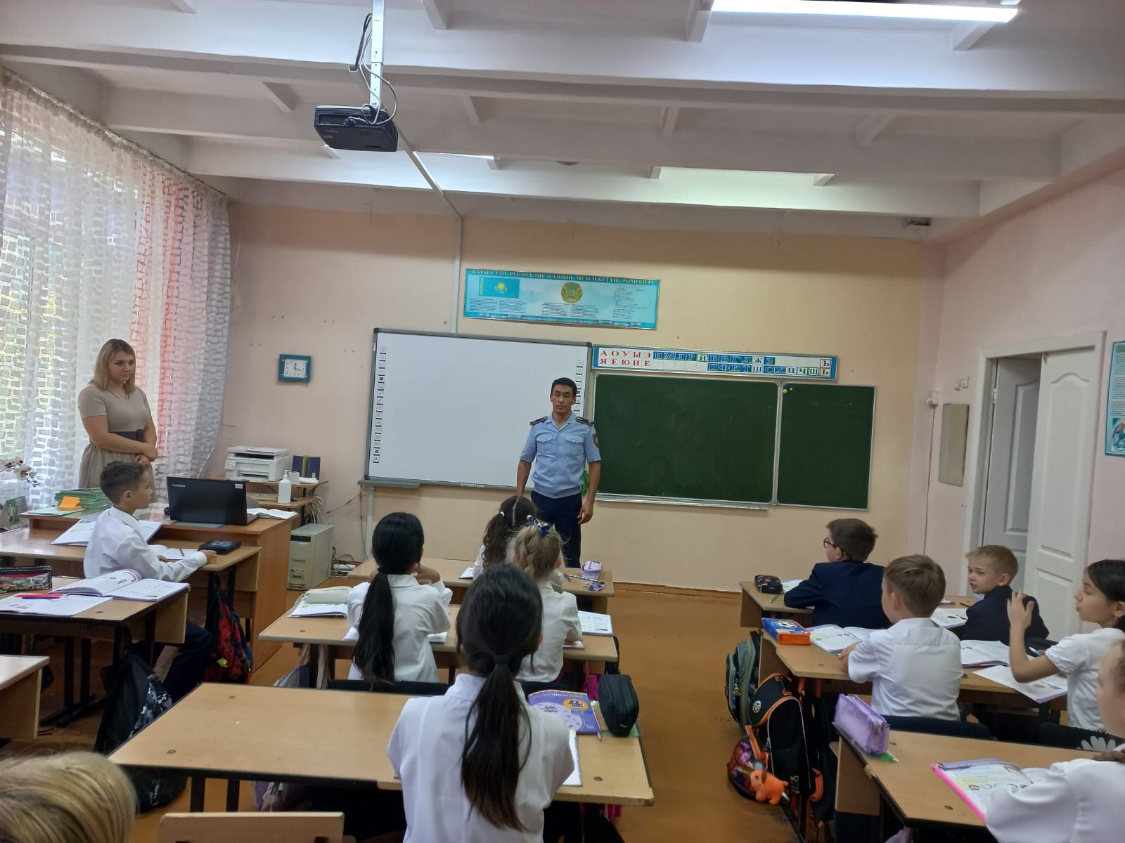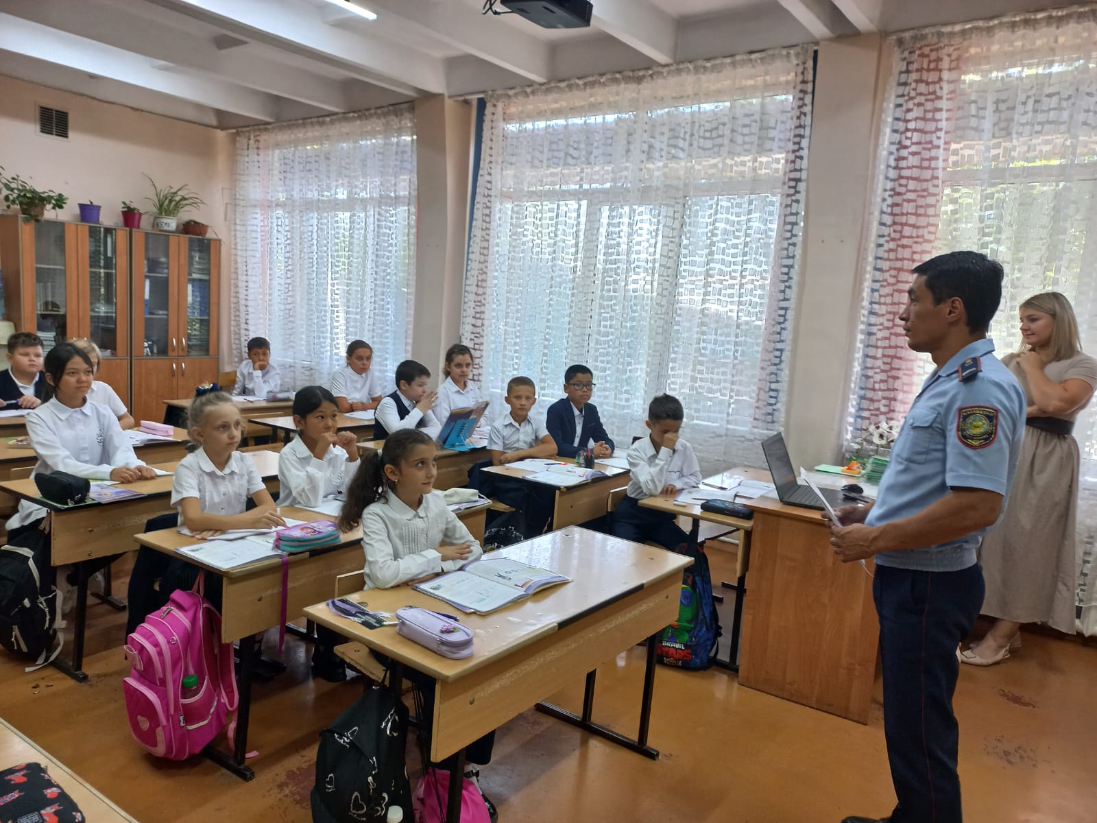 11.09.2023 г. ОЮП ОМПС УП Турксибского района лейтенантом полиции Жумановым Елжаном Нуржановичем с учащимися 1-4 классов КГУ ОШ № 50 проведена профилактическая беседа на тему: «Безопасность дорожного движения». Были приведены примеры из личного опыта, учащиеся активно участвовали в беседе.