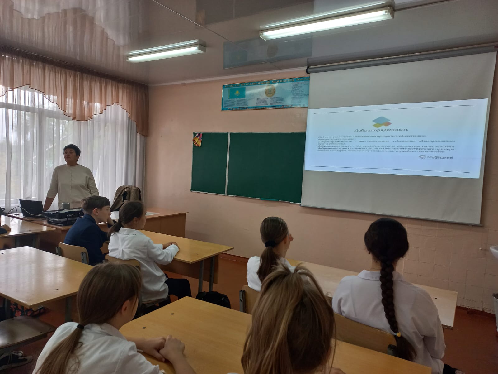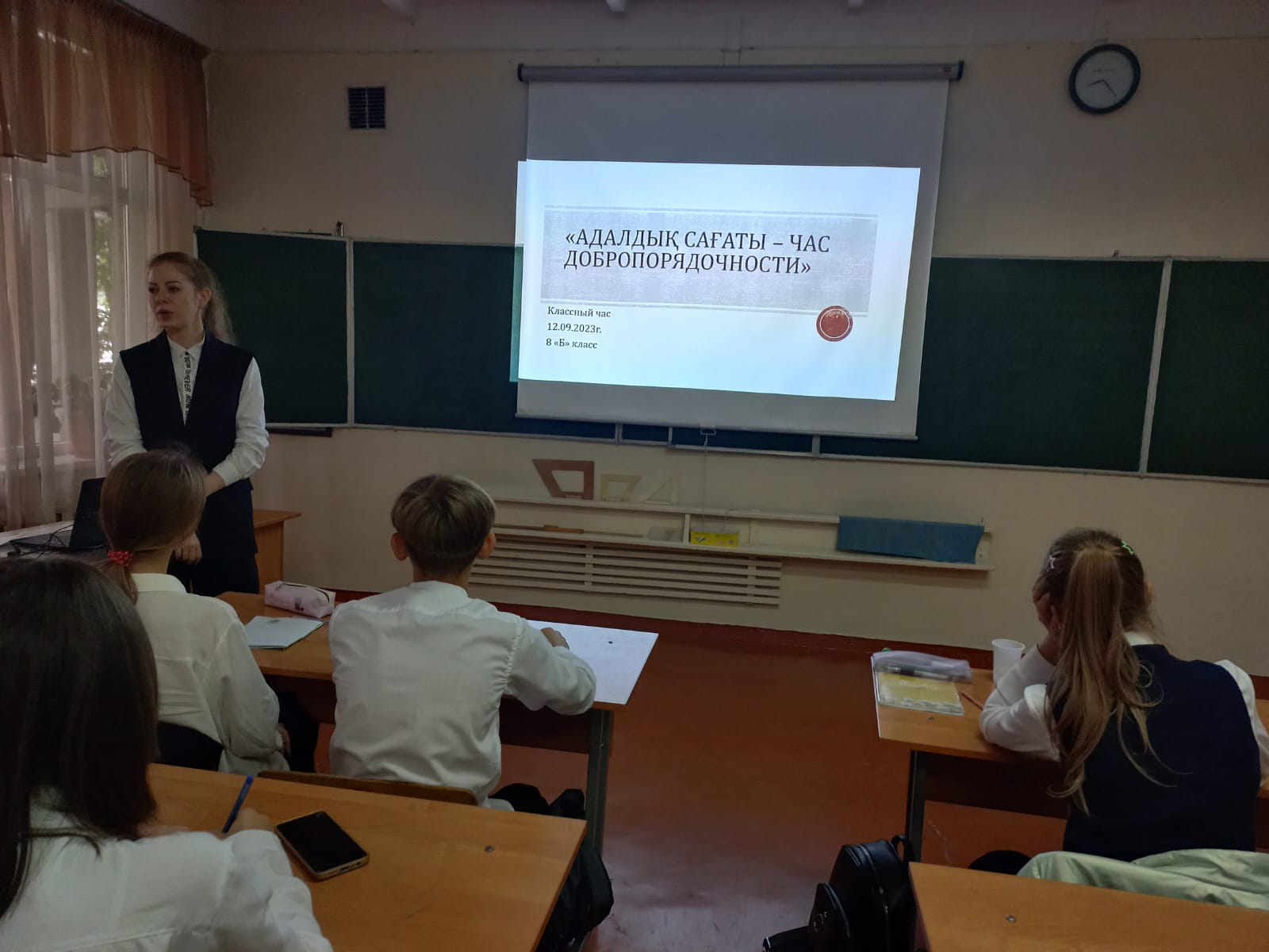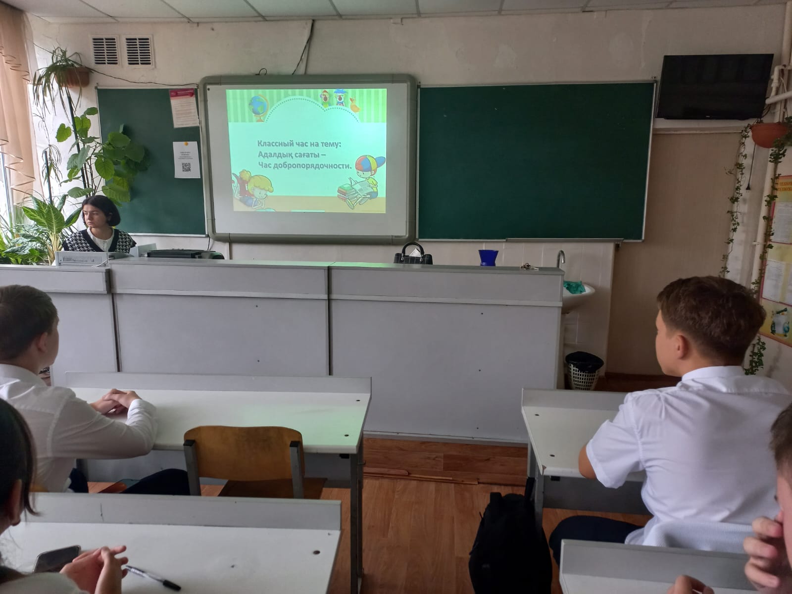 № 50 ЖББМ КММ - де 1-11 сынып жетекшілері мен оқушылары презентациялар мен бейнематериалдарды пайдалана отырып, "Адалдық сағаты -парасаттылық сағаты" бірыңғай сынып сағатын өткізді. В КГУ ОШ № 50 классными руководителями 1-11 классов с учащимися проведен единый классный час «Адалдық сағаты - Час добропорядочности» с использованием презентаций и видеоматериала.