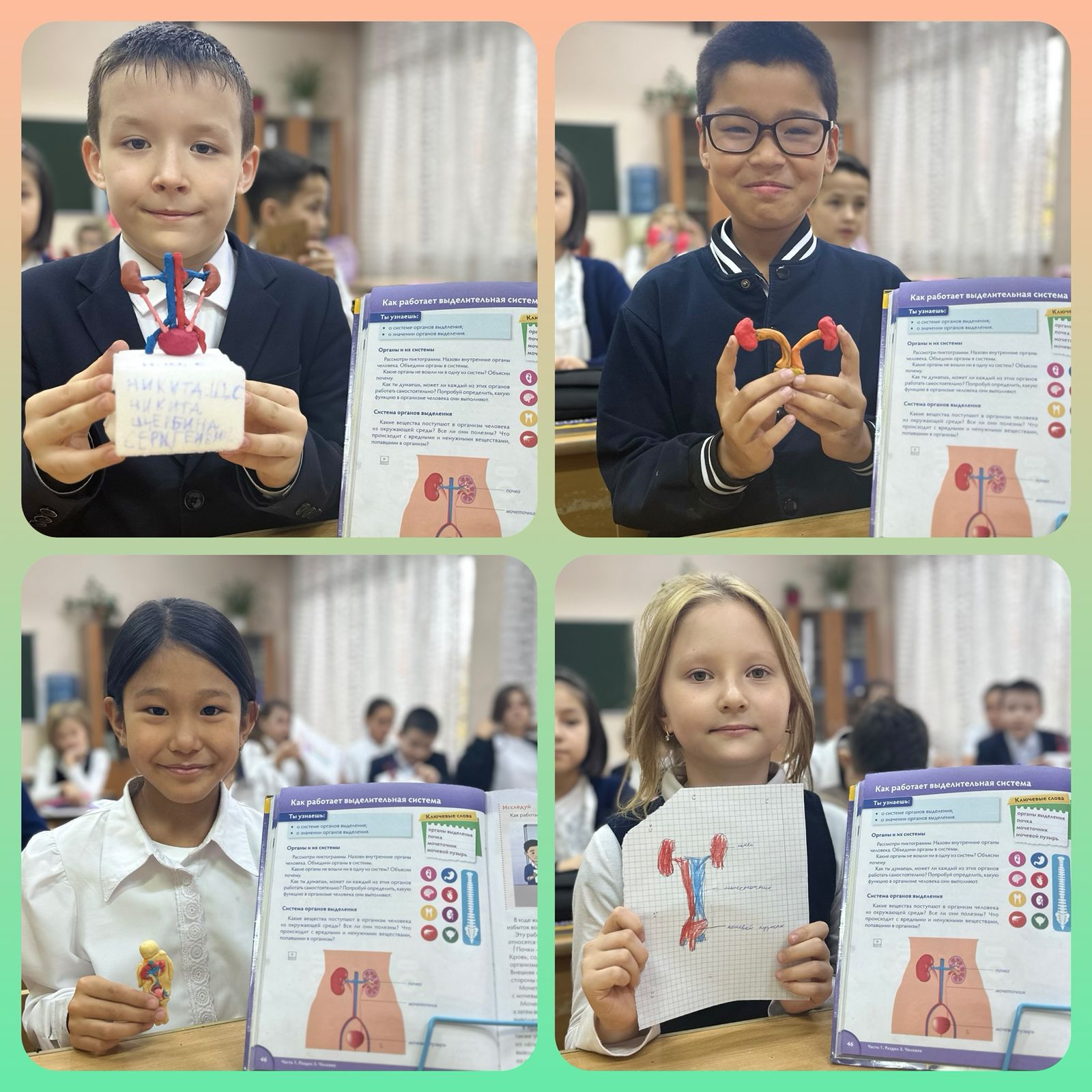 № 50 ЖББМ -де 4 "А" сынып оқушылары жаратылыстану сабағында Зырянова Г.А. жетекшілігімен "шығару жүйесі қалай жұмыс істейді"тақырыбында қолөнер, суреттер дайындады.