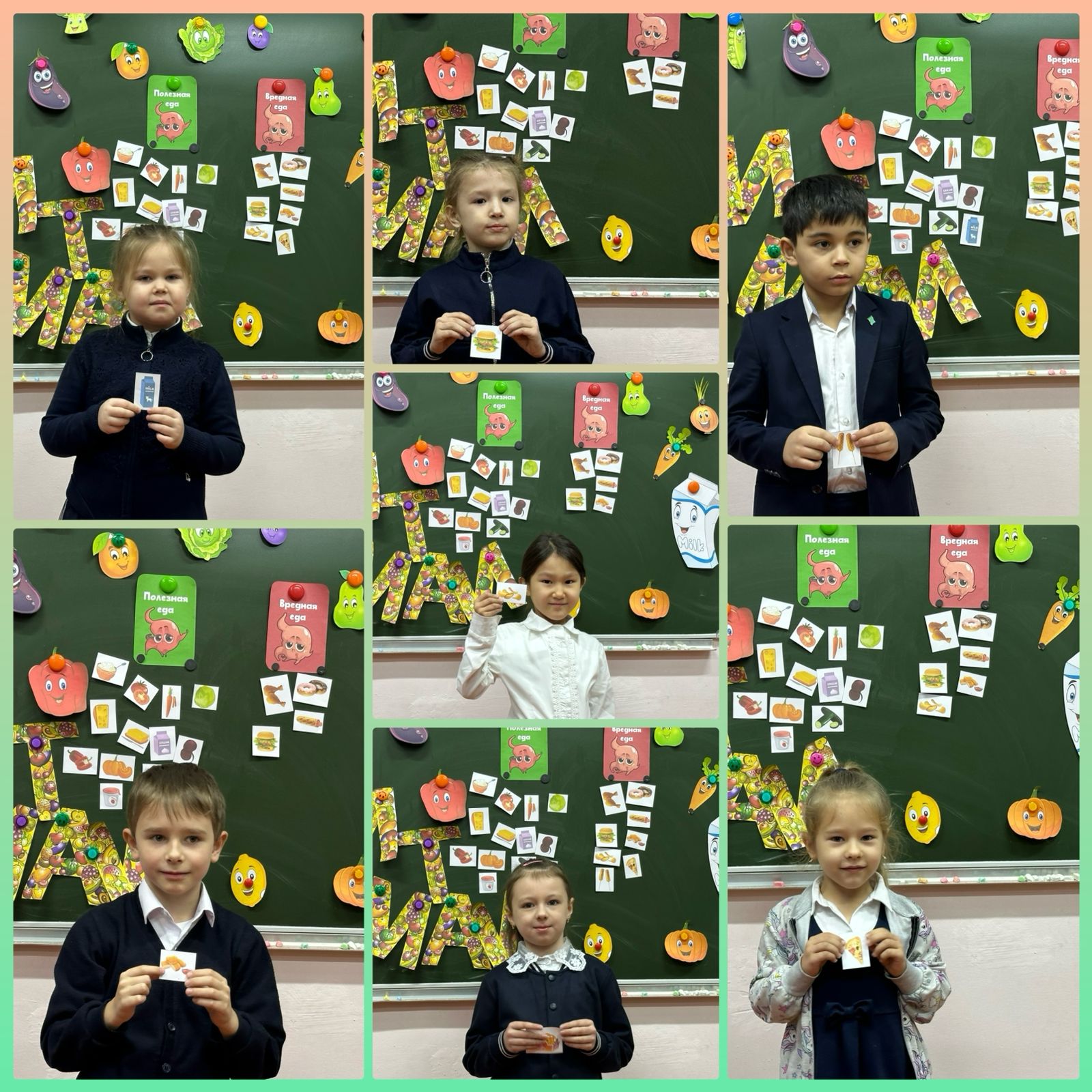В КГУ ОШ № 50 классным руководителем 1 «Б» класса Зыряновой Г.А. с учащимися проведено внеклассное мероприятие: игра-викторина «Правильное питание. Полезная и вредная еда». Учащиеся класса приняли активное участие в конкурсе «Детская полезная еда», дома, совместно с родителями, приготовили блюдо из полезных продуктов.