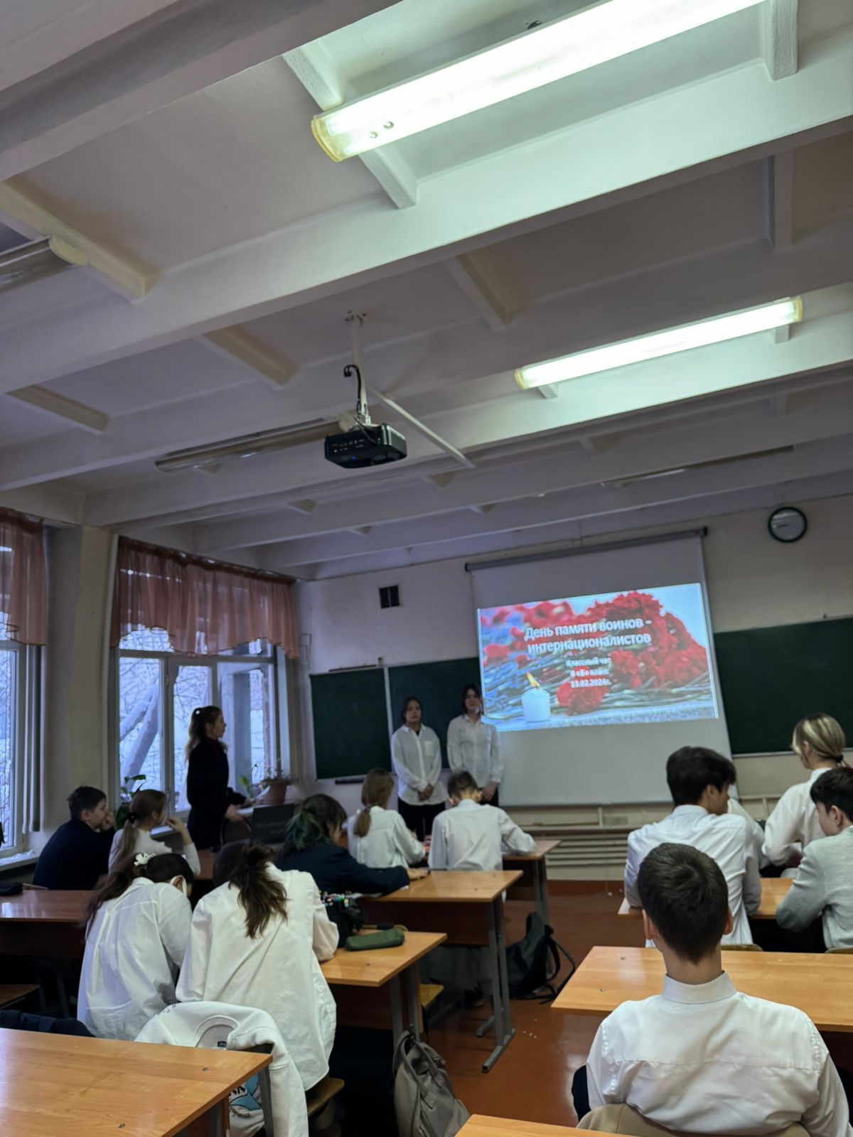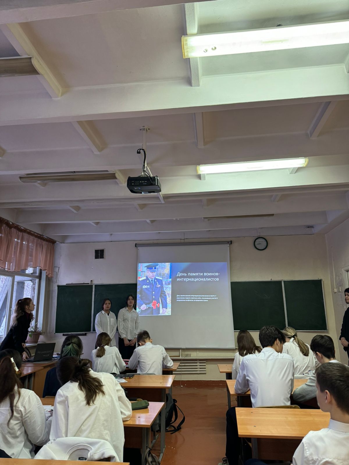 В КГУ ОШ № 50 в соответствие с циклограммой проведения классных часов, классными руководителями 1-11 классов с учащимися проведены классные часы, посвященные Дню памяти воинов-интернационалистов.