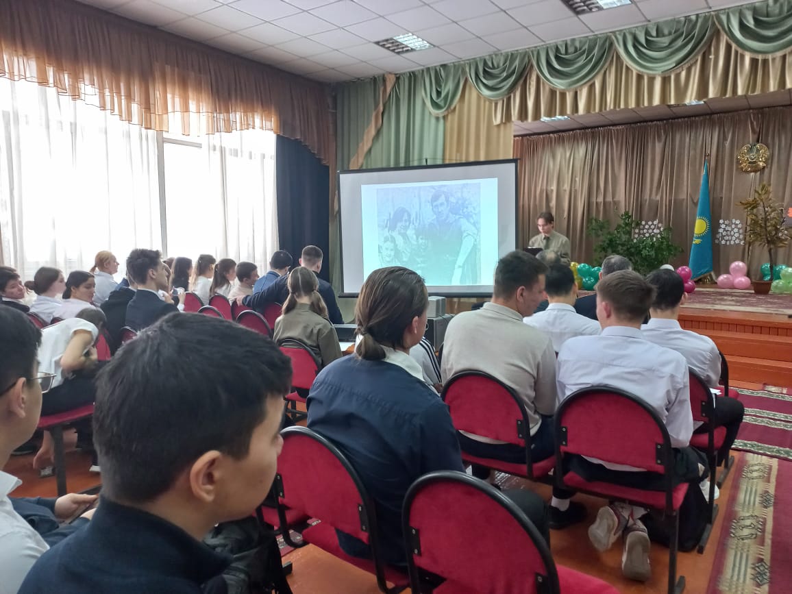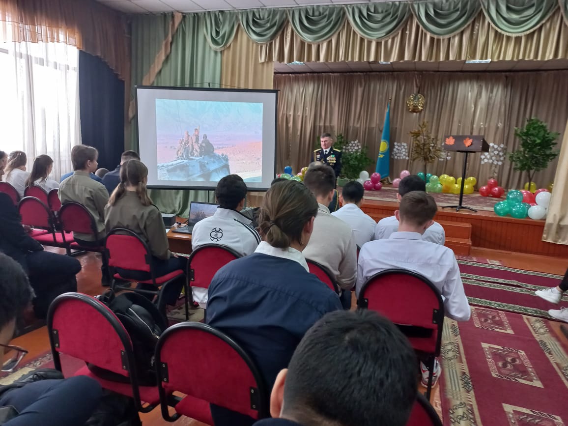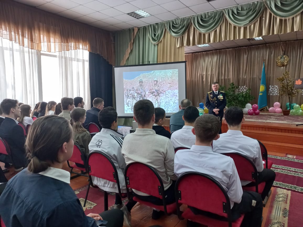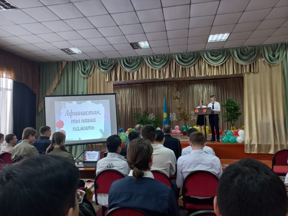 В КГУ ОШ № 50, к 35-летней годовщине вывода советских войск из Афганистана, проведена конференция с учащимися 10-11 классов: «Афганистан, ты наша память» с приглашением участника афганской войны Архипова Юрия Алексеевича.Под руководством преподавателя-организатора начальной военной и технологической подготовки Канабекова А.Ж., и классного руководителя Похомовой Е.И., учащиеся 11 «А» класса возложили цветы к мемориальной доске Хребтова Валерия, ученика школы, отдавшему свой долг ДРА и погибшему в бою с моджахедами. После возложения цветов, в актовом зале школы проведена конференция «Афганистан, ты наша память», на которой выступили учащиеся 10-11 классов, подготовленная учителями истории Некрасовой Н.М., Клышбаевым С.Д., Шаймұрат Е.О.