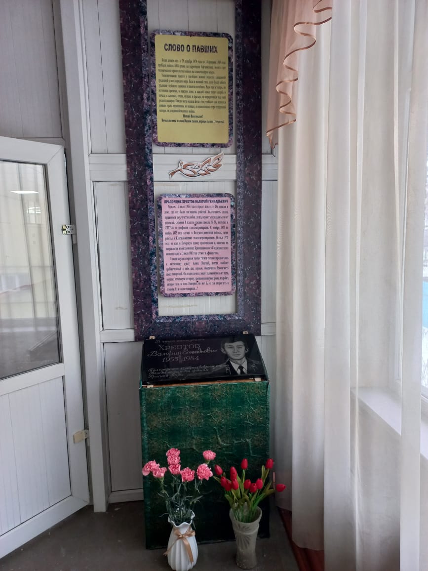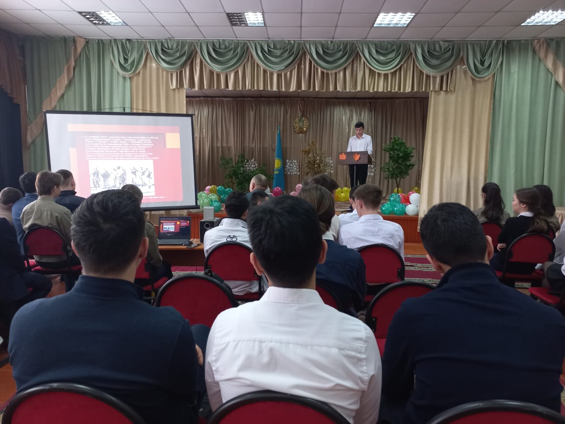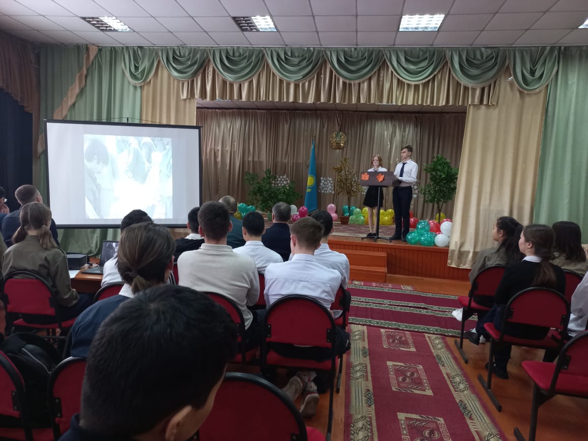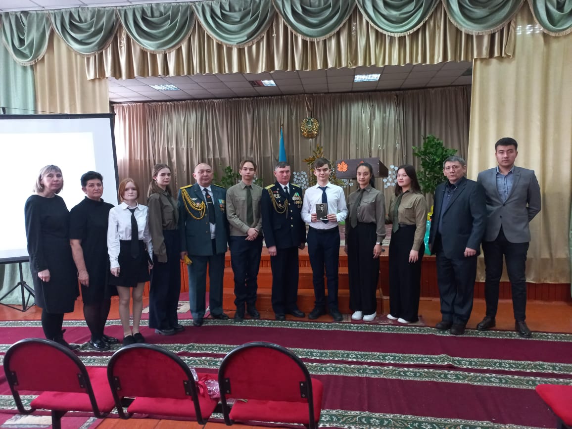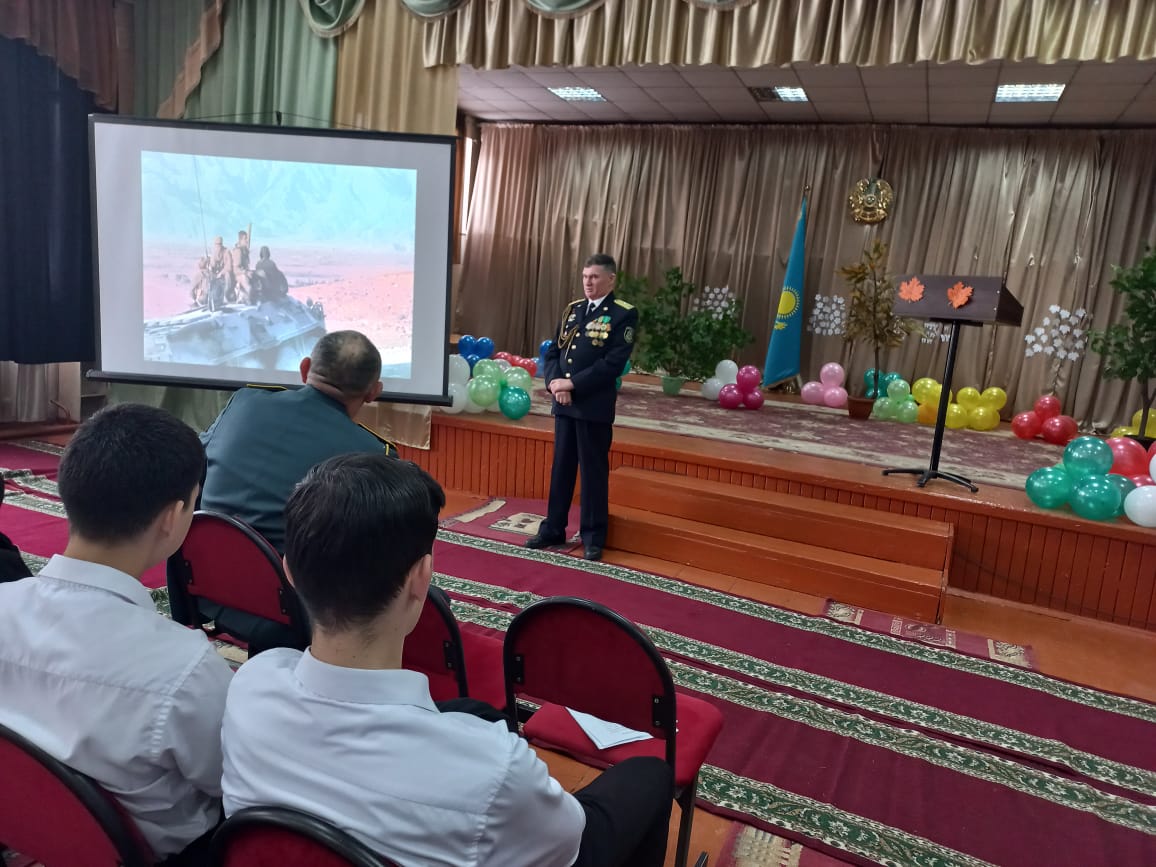 В КГУ ОШ № 50, к 35-летней годовщине вывода советских войск из Афганистана, проведена конференция с учащимися 10-11 классов: «Афганистан, ты наша память» с приглашением участника афганской войны Архипова Юрия Алексеевича.Под руководством преподавателя-организатора начальной военной и технологической подготовки Канабекова А.Ж., и классного руководителя Похомовой Е.И., учащиеся 11 «А» класса возложили цветы к мемориальной доске Хребтова Валерия, ученика школы, отдавшему свой долг ДРА и погибшему в бою с моджахедами. После возложения цветов, в актовом зале школы проведена конференция «Афганистан, ты наша память», на которой выступили учащиеся 10-11 классов, подготовленная учителями истории Некрасовой Н.М., Клышбаевым С.Д., Шаймұрат Е.О.