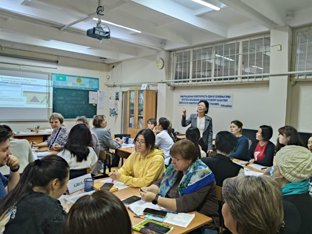19 октября 2024 года в КГУ ОШ № 50 состоялся районный семинар для учителей математики Турксибского района «Повышение математической грамотности учащихся через развитие компетенций Международной программы по оценке образовательных достижений PISA». Фасилитатором выступила учитель информатики, педагог-мастер Рахметова Г.С., которая ознакомила слушателей с Сингапурской учебной программой Marshall Cavendish education по развитию компетенций PISA.