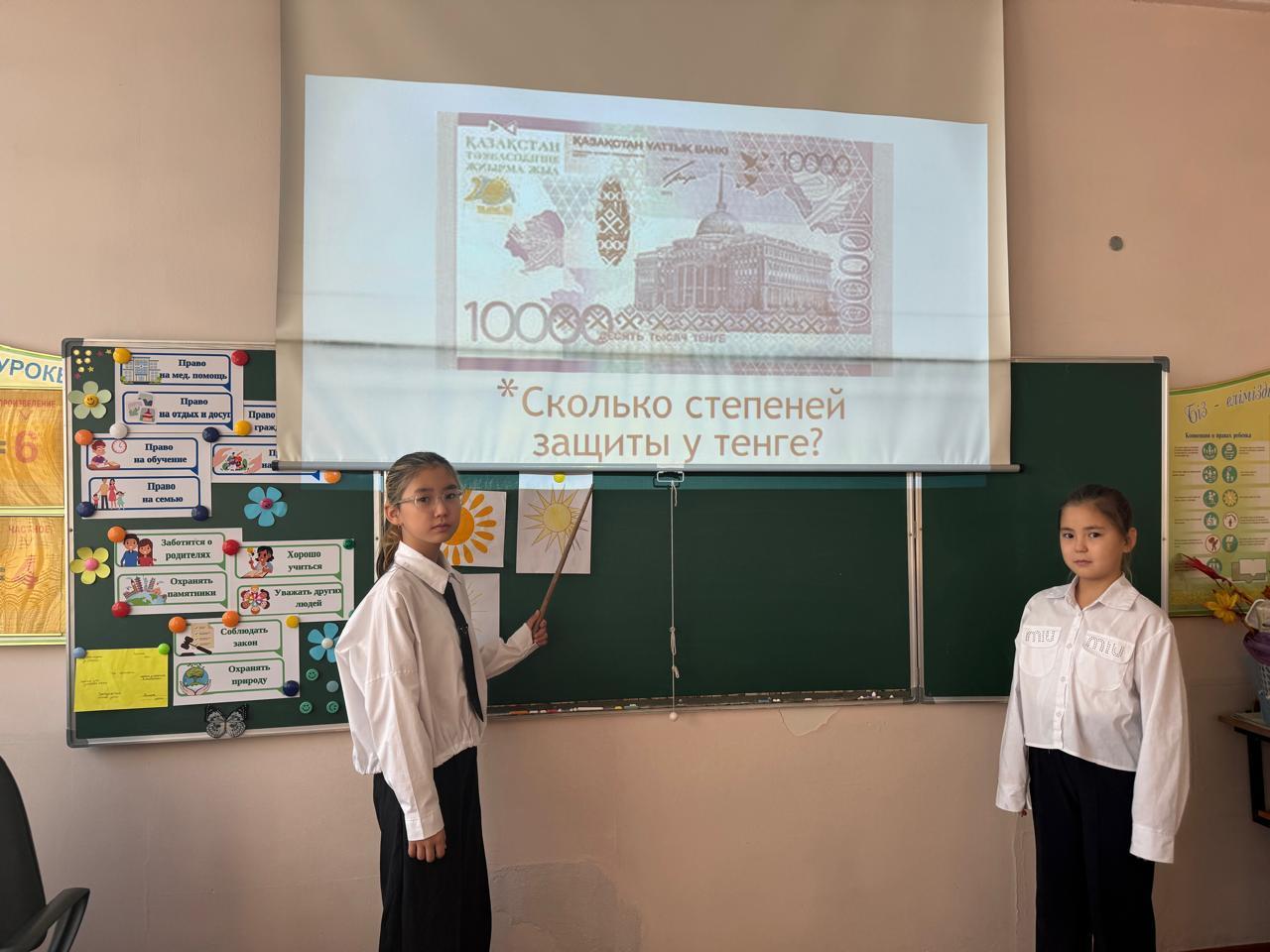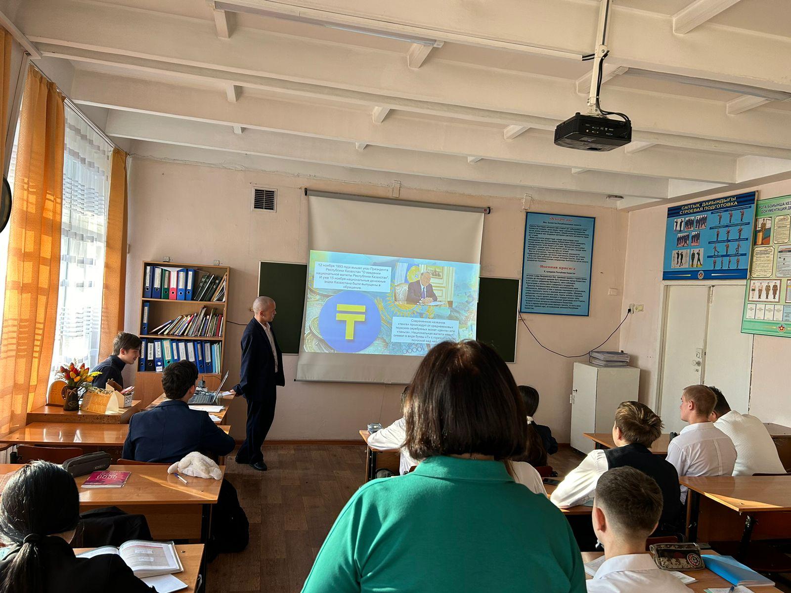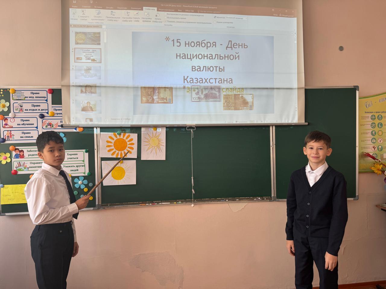 С целью воспитания казахстанского патриотизма и любви к Родине, уважения к символам государства, в КГУ ОШ № 50 классными руководителями 1-11 классов с учащимися проведен классный час, посвященный Дню национальной валюты Республики Казахстан с использованием презентаций, видеоматериала.