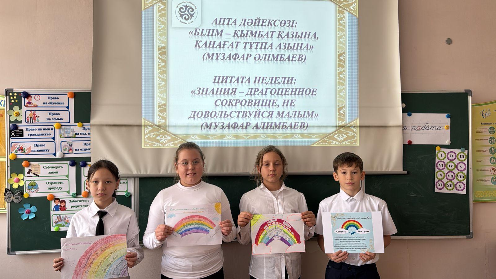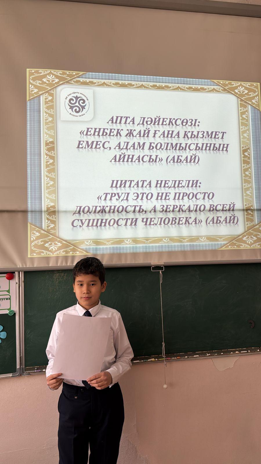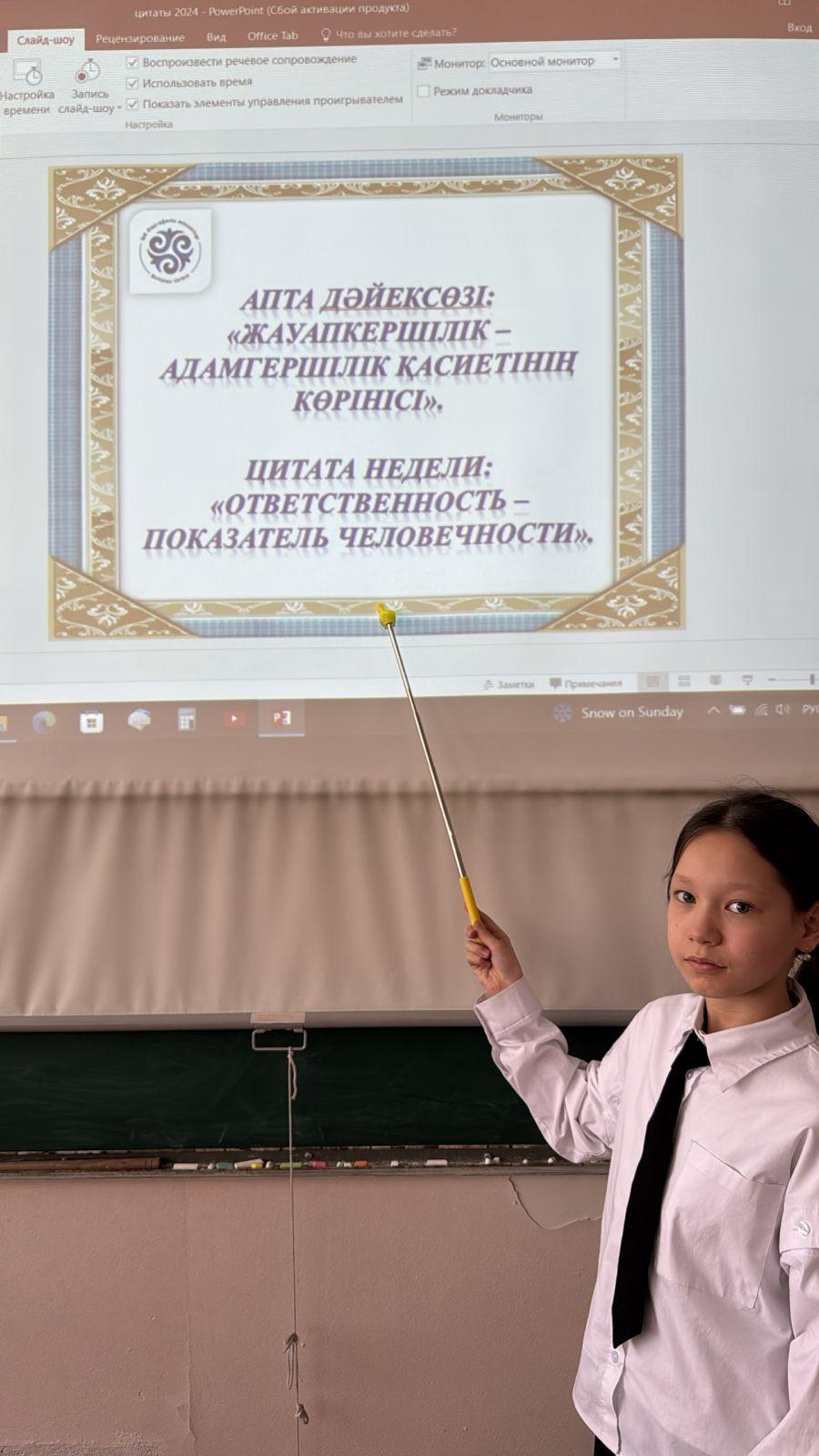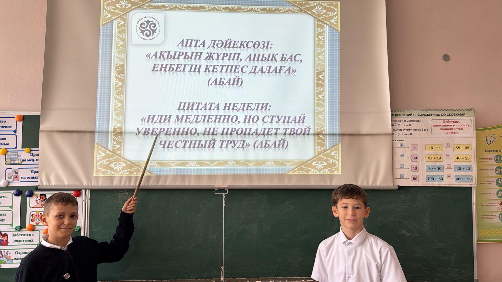 Цитаты недели – пословицы, поговорки, народные мудрости, изречения выдающихся личностей, содержание которых служит лейтмотивом учебной и внеучебной деятельности, в КГУ ОШ № 50 размещаются на Led-экранах, классных досках.