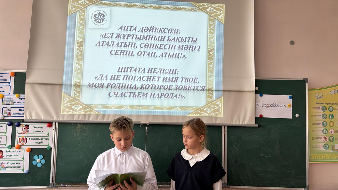Аптаның дәйексөздері-мазмұны оқу және оқудан тыс қызметтің лейтмотиві ретінде қызмет ететін көрнекті тұлғалардың мақал-мәтелдері, мақал-мәтелдері, халық даналығы, сөздері № 50 ЖББМ КММ-де Led-экрандарда, тақта тақталарында орналастырылады.