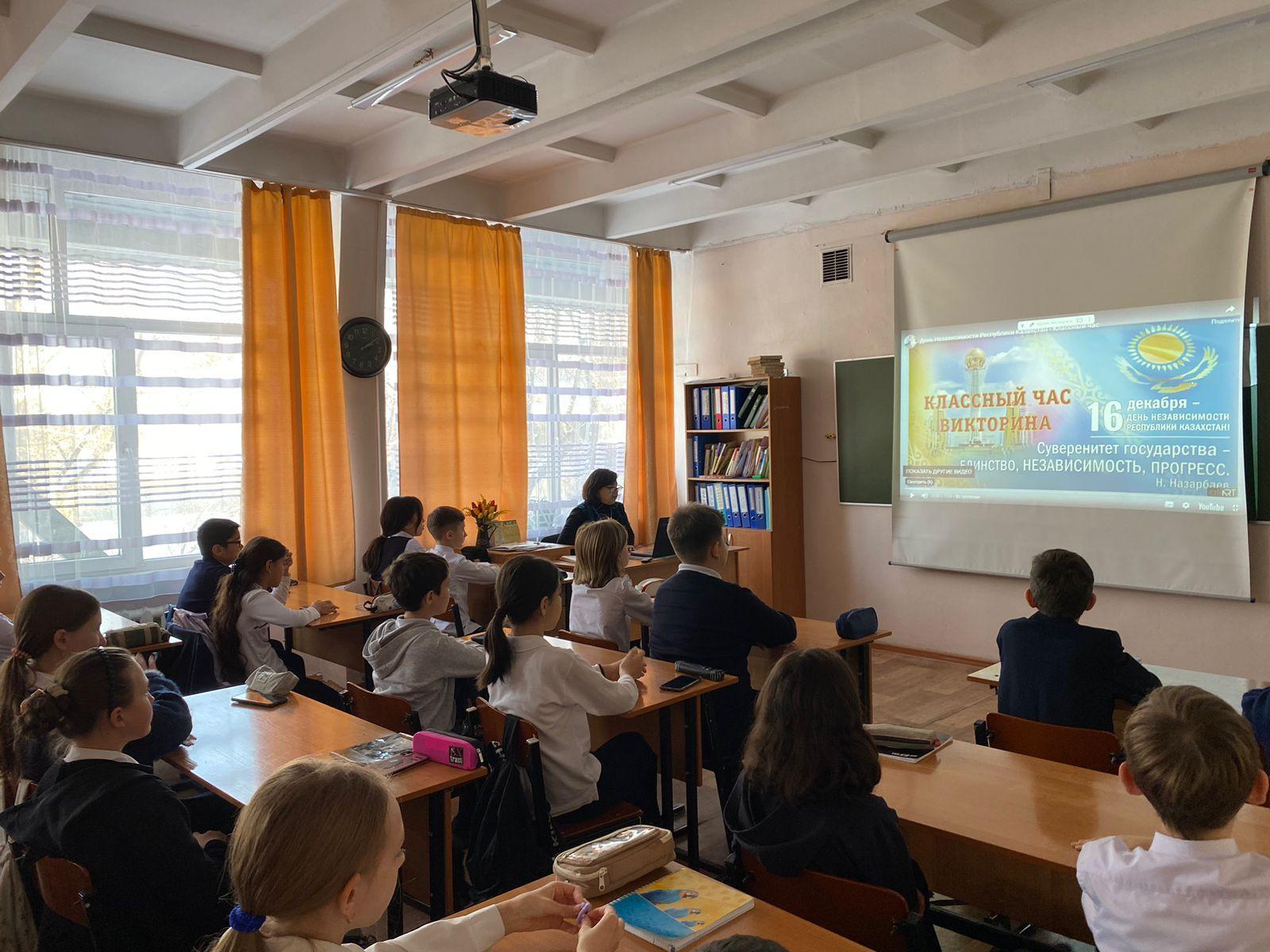 С целью воспитания патриотизма, уважения к истории и культуре своей страны, в КГУ ОШ № 50 классными руководителями 1-11 классов с учащимися проведены классные часы, посвященные Дню Независимости Республики Казахстан.