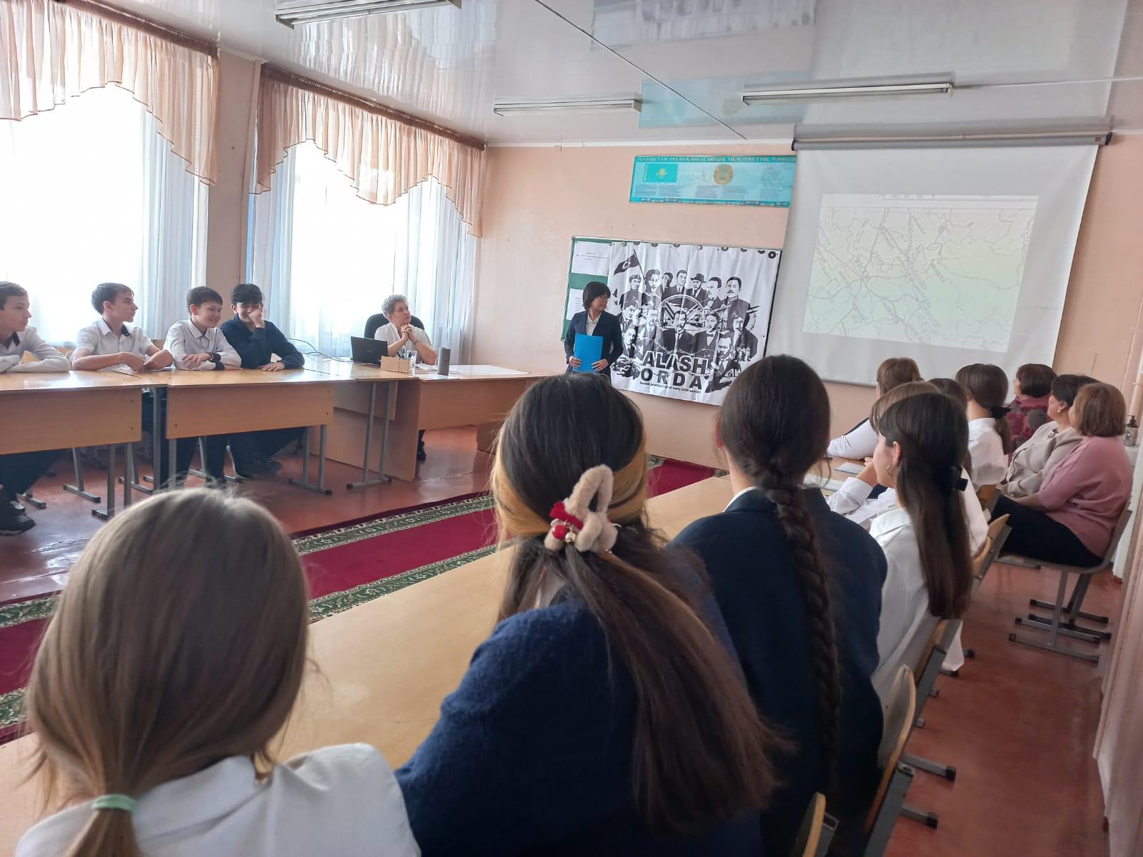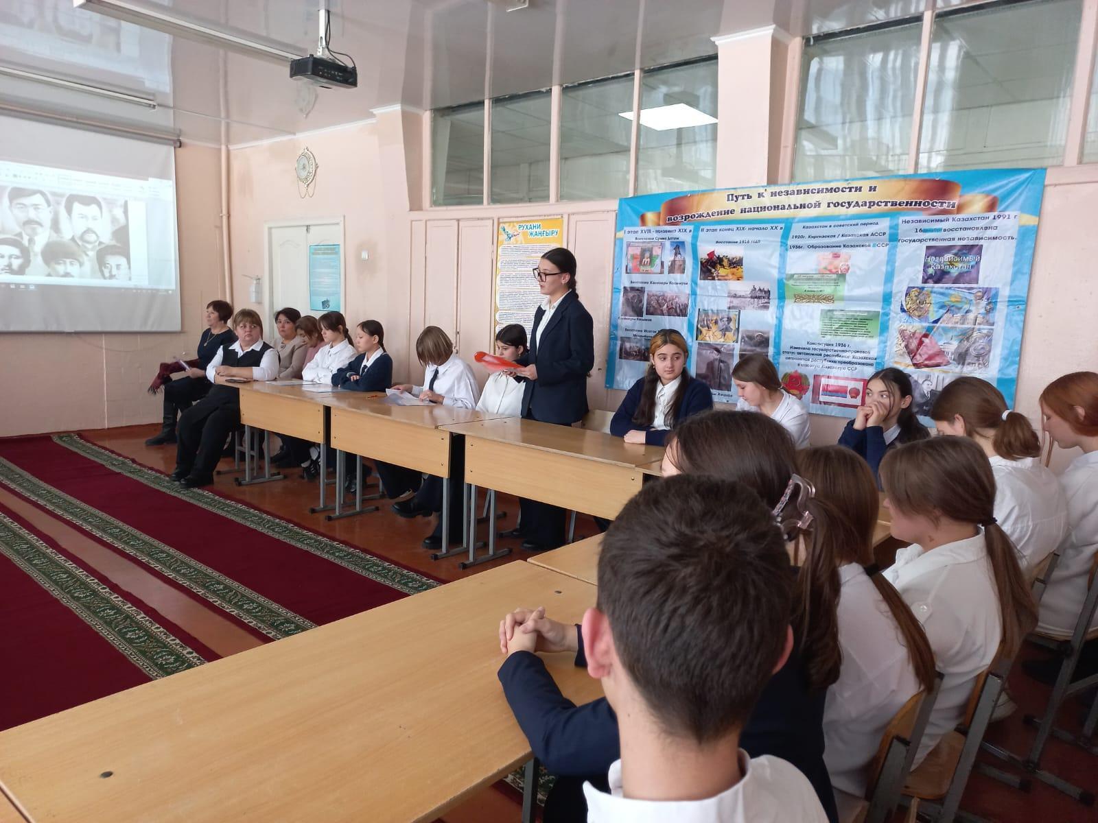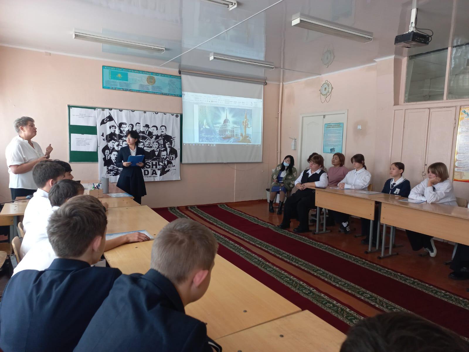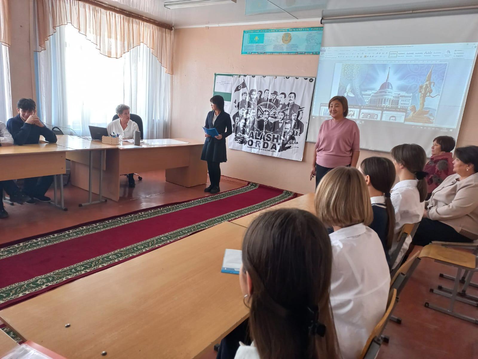Қазақстан Республикасының Тәуелсіздік күніне орай № 50 ЖББМ КММ тарих пәнінің мұғалімі Н.М. Некрасова 8-сынып оқушыларымен «Алаш идеясы және Қазақстанның тәуелсіздігі» атты дөңгелек үстел өткізді.