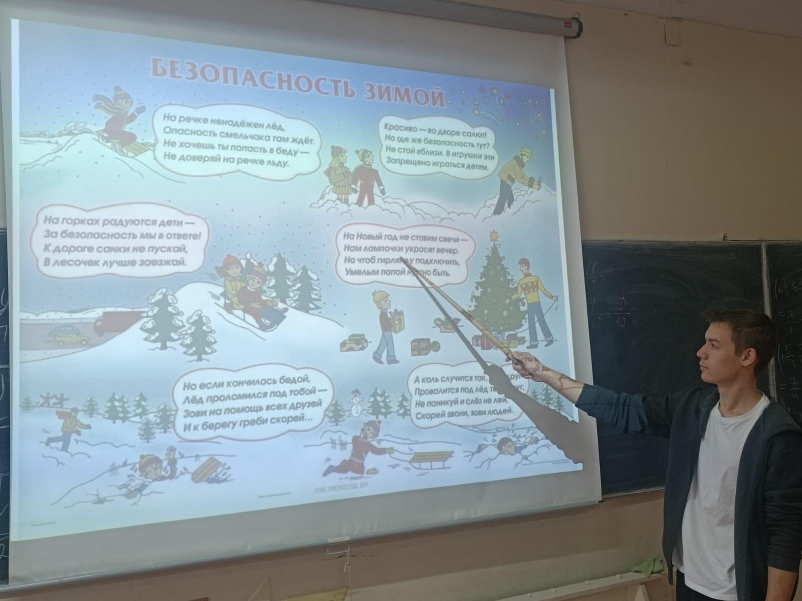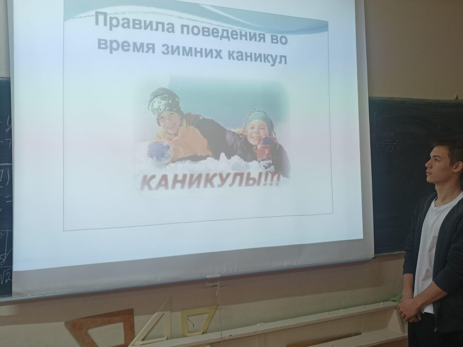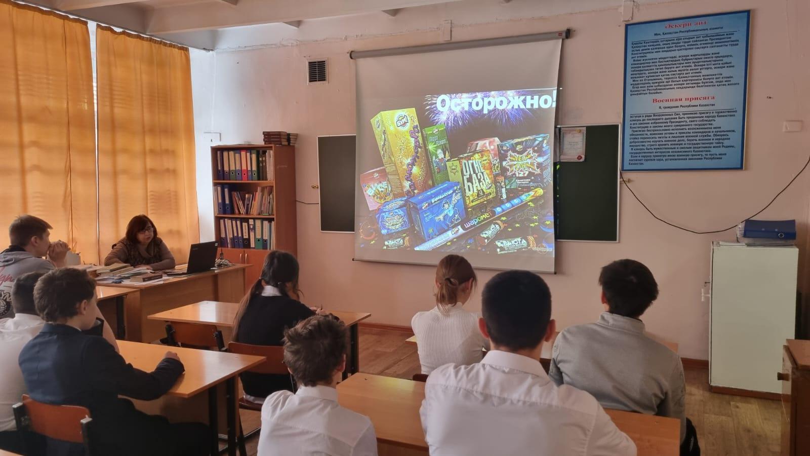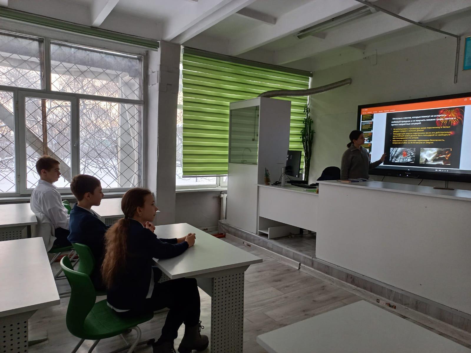 С целью обеспечения безопасности детей во время зимних каникул, в КГУ ОШ № 50 классными руководителями 1-11 классов с учащимися проведен «Урок безопасности», на котором проведены профилактические беседы по пожарной безопасности, поведению на дороге, воде, железной дороге, в транспорте, общественных местах, о запрете использования пиротехнических изделий, об опасности на водоемах и тонком льде.