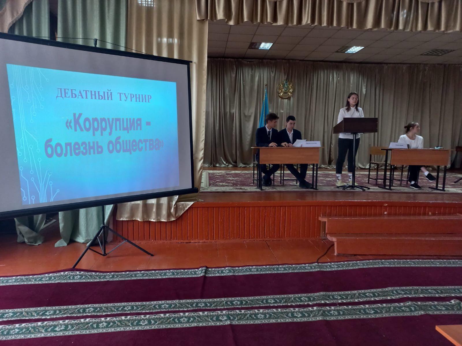 На основании плана мероприятий на зимние каникулы, в КГУ ОШ № 50 учителем истории, руководителем дебатного клуба «ALASH» Шаймұрат Е.О. проведен дебатный турнир между учащимися 10-11 классов на тему: «Коррупция — болезнь общества».
