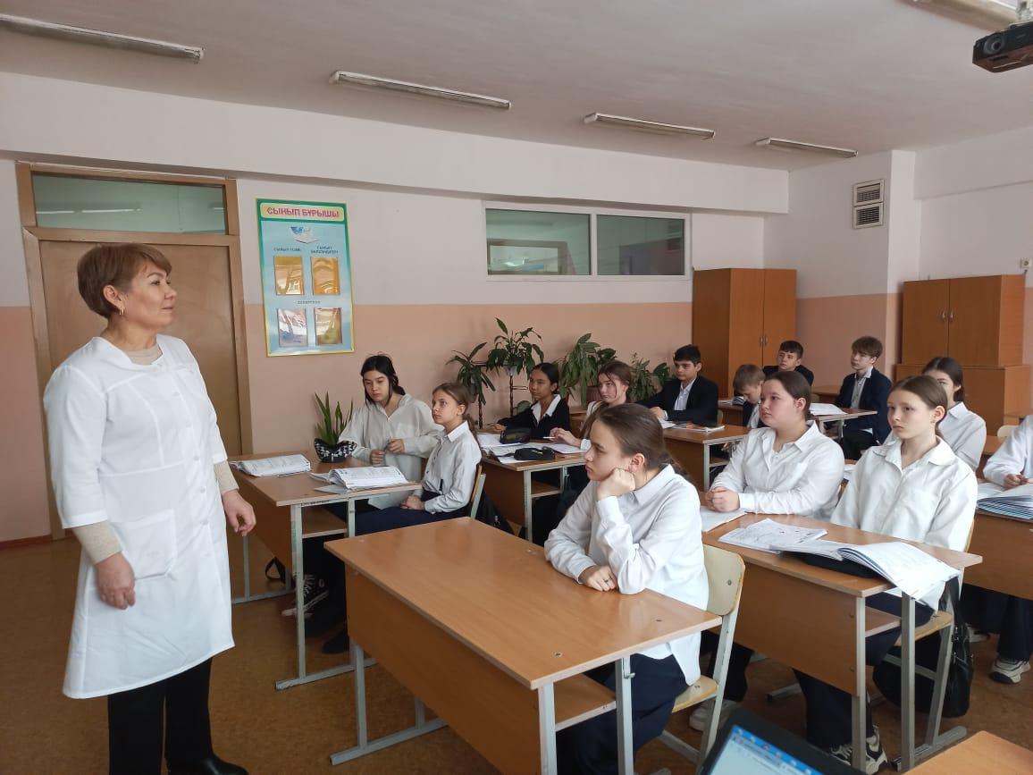 Салауатты өмір салтын қалыптастыру мақсатында, № 50 ЖББМ КММ медицина қызметкері Ш.А. Үйсінбаевамен 7-8 сынып оқушыларымен «Жеке гигиена», «Вирустық гепатит», «Алкоголь және темекі өнімдерінің зияны» атты әңгімелер өткізілді.