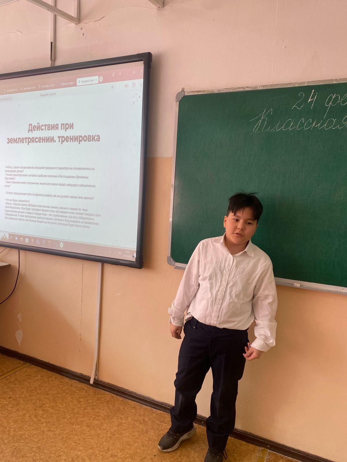 5-9 сынып оқушыларымен «Көмек» бағдарламасы бойынша «Жер сілкінісі» Модулінің алғашқы сабағы. Первое занятие модуля «Землетрясения» по Программе «Көмек» с учащимися 5-9 классов.